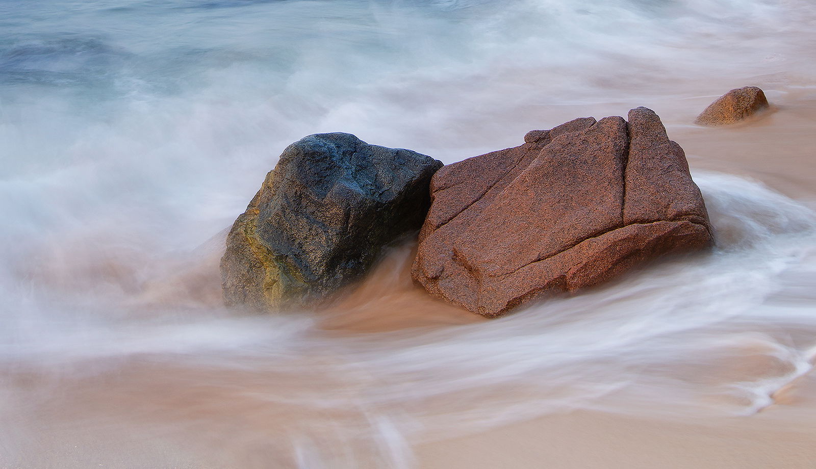 Michael, I like this a lot. The wispy water works nicely around the excellently detailed rocks here. I also think the combination of the blue water at the top and then the brown sand at the bottom makes a neat combination too.