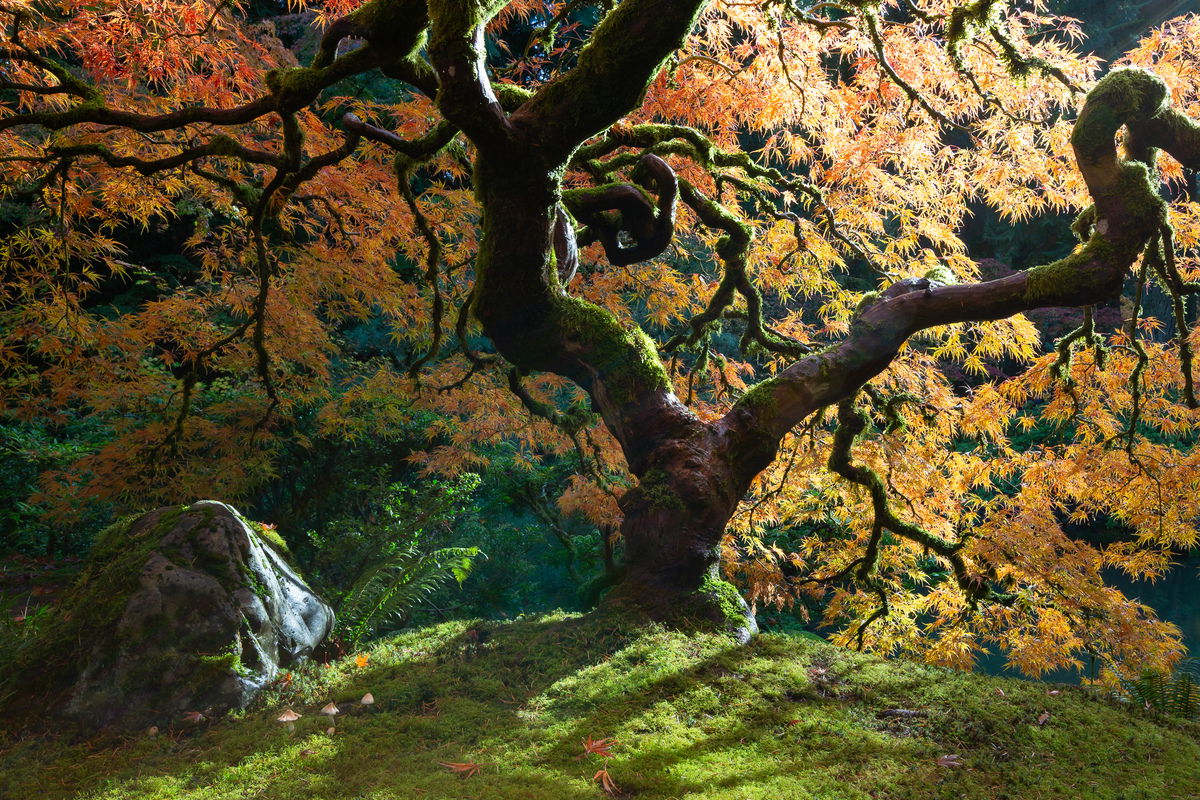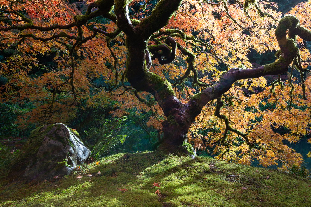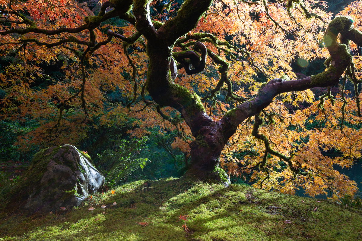When I went to the Portland Japanese Garden last week, I was taken by all of the mushrooms under the maples. I spent a ton of time at one that is somewhat under photographed (it has a bamboo fence behind it, etc.) and then discovered that “THE Tree” had mushrooms as well.