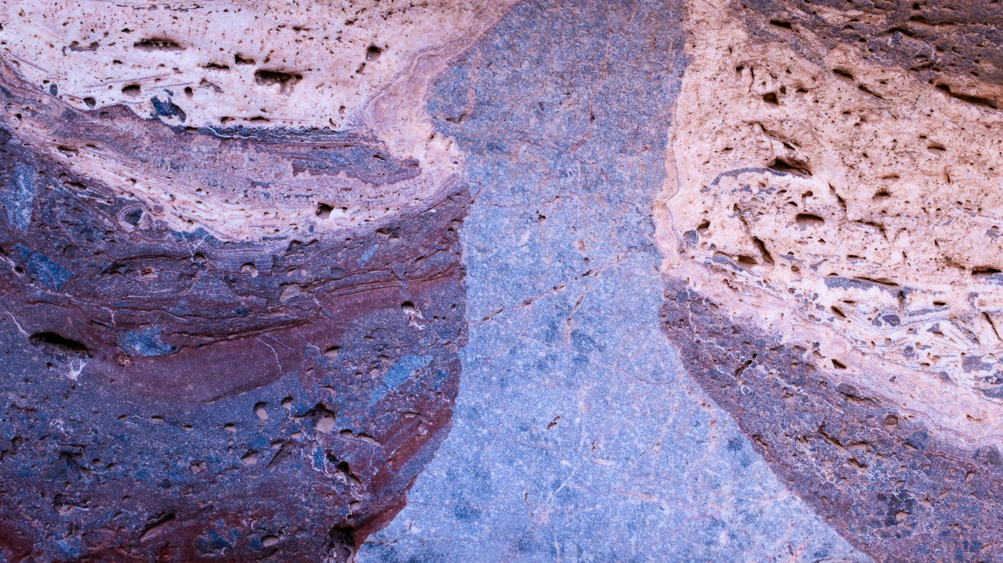 Randall, this is a fine collection of colors and textures. The sides look like ashfall from a volcanic eruption that landed hot enough to distort the shapes. The “streak” down the middle is amazingly different from the sides, which leaves me wondering how it got there. There’s quite a geology story here. I wish I better understood what that story is.