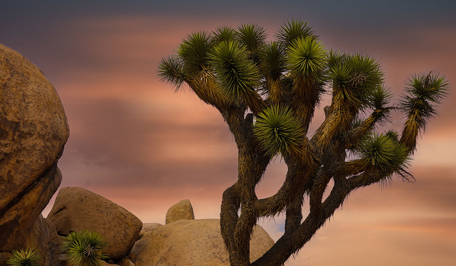 Hi Mario… The colors are really nice. The sky and the color green on the Joshua Tree. However, I feel that there are too many subjects in the photograph that are not “whole”. Meaning the rocks are the left are cut off, there is creep of a Joshua Tree sneaking from the bottom on the left and I really want to see the rest of the tree. Try cropping to a portrait with the focus on the tree in balance with the the frame of the portrait. Further, next time you make it out to Joshua Tree, capture and isolate the entire tree in portrait mode. I think that would make a nice photograph - especially with the colors.