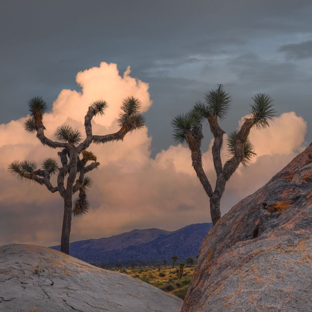 I like the repetitive elements here. I love the tonality and color of the clouds, but I feel the foreground rocks and Joshua trees need to brighten up a bit. @Jim_Gavin’s idea for a crop from the top is an interesting idea.