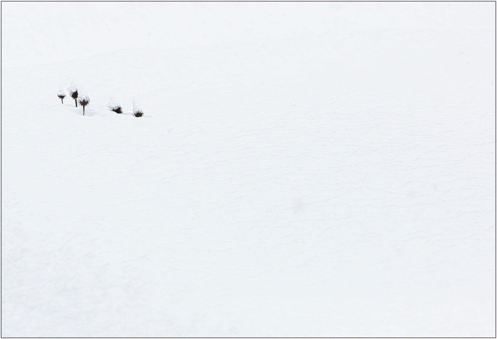 We don’t get too much snow in the Pacific Northwest without heading for the mountains, but back on February 11th, 2019 we got quite a bit. I spent a good share of the day in my bird blind photographing them, but I also grabbed some backyard shots including this one of some snow-capped seed heads almost buried.