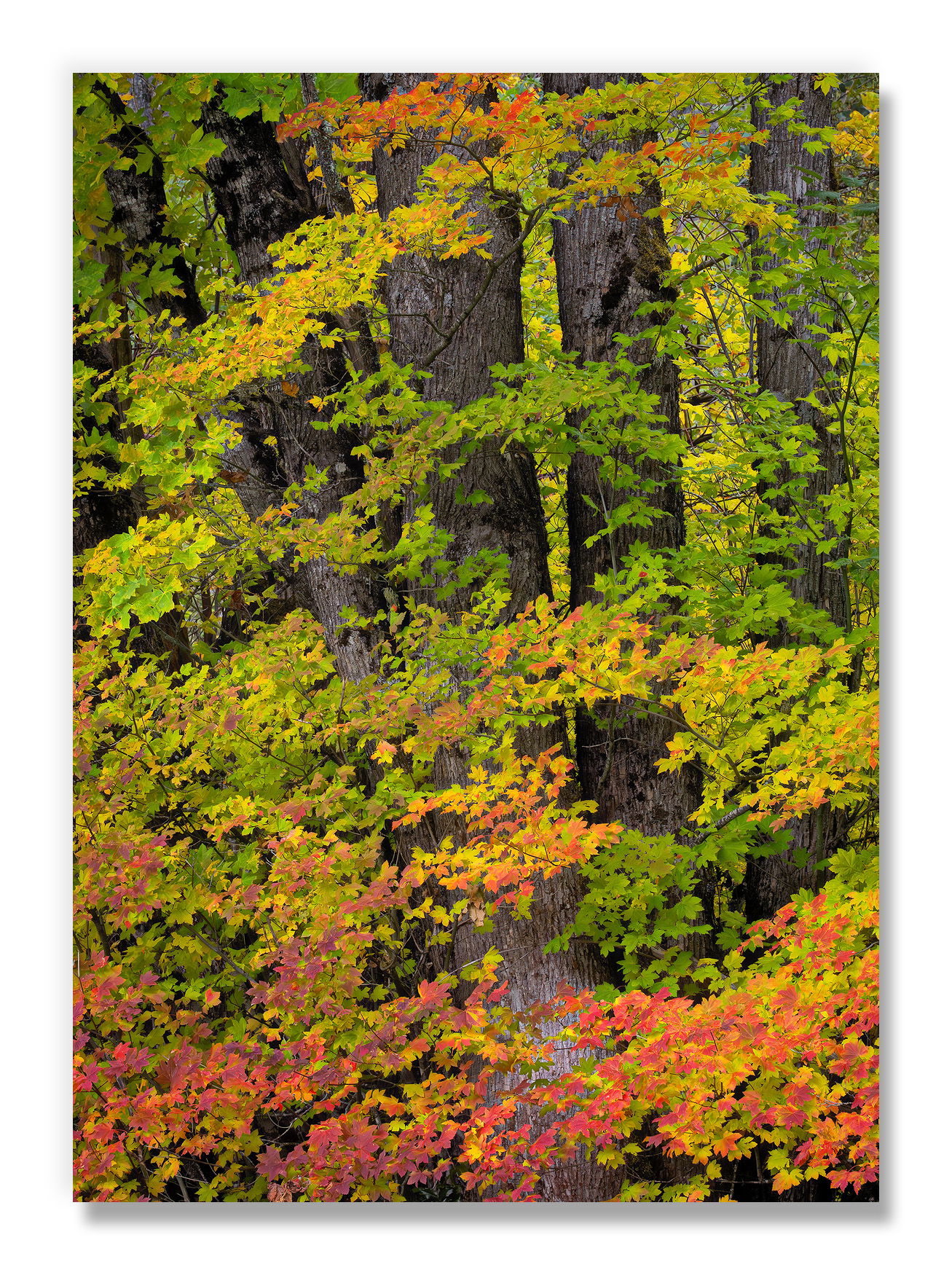 I struggled with the color balance on this one. The camera read it much cooler than it was, but getting the Vine Maple to look correct made the trunks in the background seem too warm. Does the compromise I came up with seem natural to you?