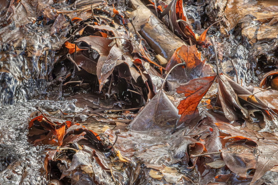 I was taking photos along a favorite creek when I saw this. It was an appealing but of chaos. I was in a spot where I couldn’t set up the tripod so the shot was handheld.