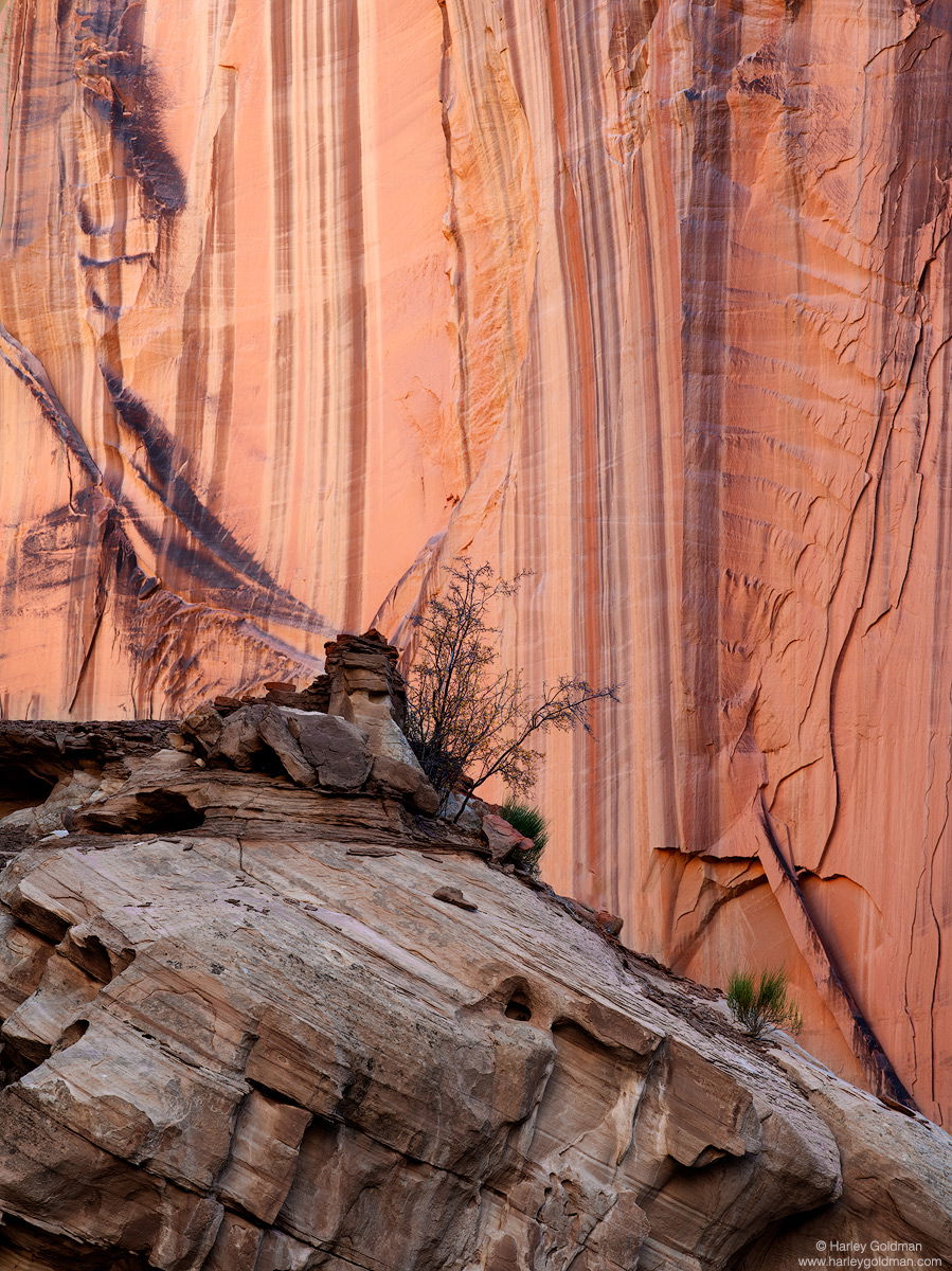 Love the textures and colors of the backwall, Harley. The diagonal of the foreground rock formation add a wonderful dynamic between the two. It is just gorgeous, IMHO. Very nicely seen and captured.