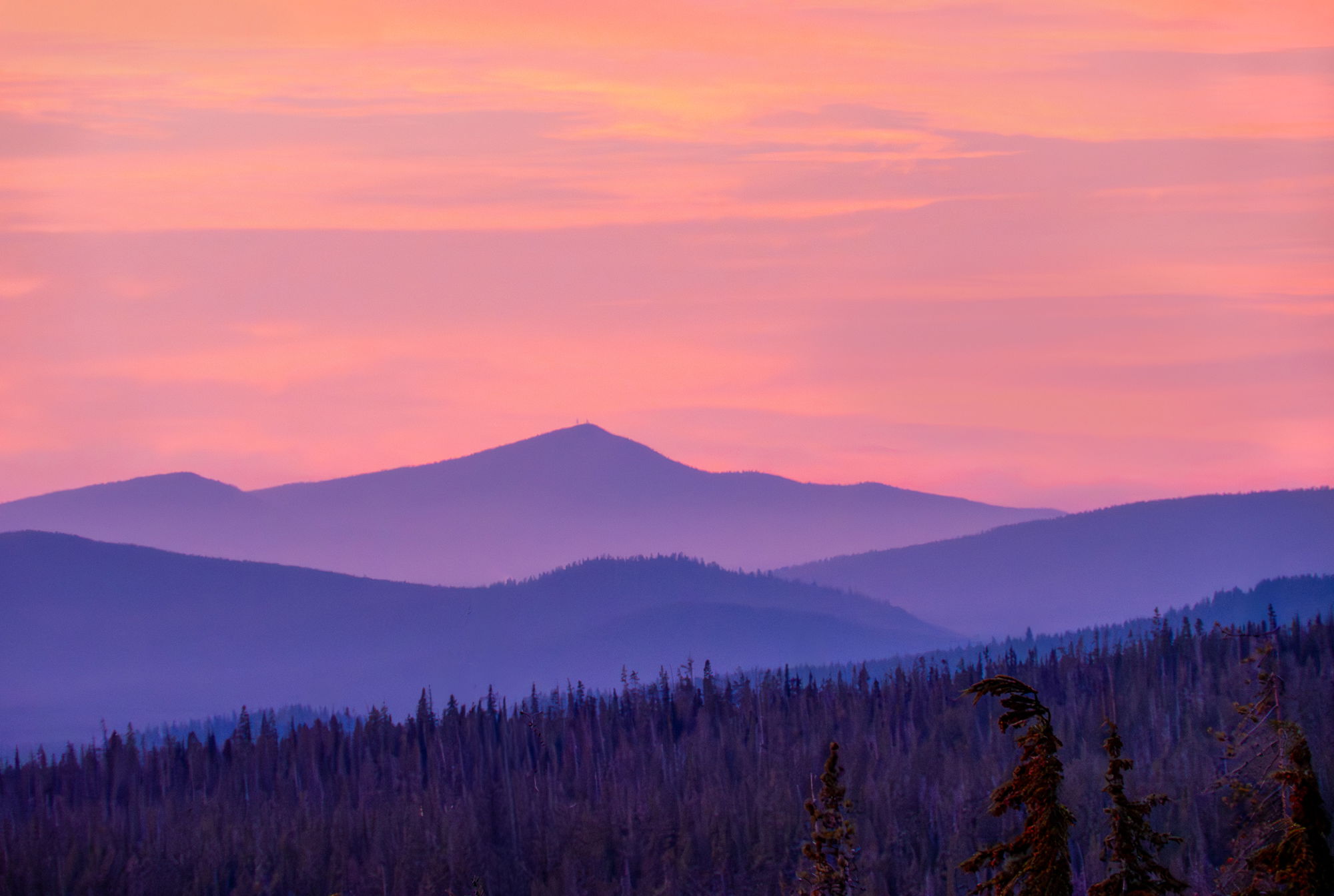 I was headed up the Cascade Lake Highway in Oregon not expecting there would be much of a sunrise. All of the sudden the sky lit up. I managed to find a place to pull off the road with an opening in the trees that offered a view. It was cold and windy, but worth the discomfort to capture this majestic view.