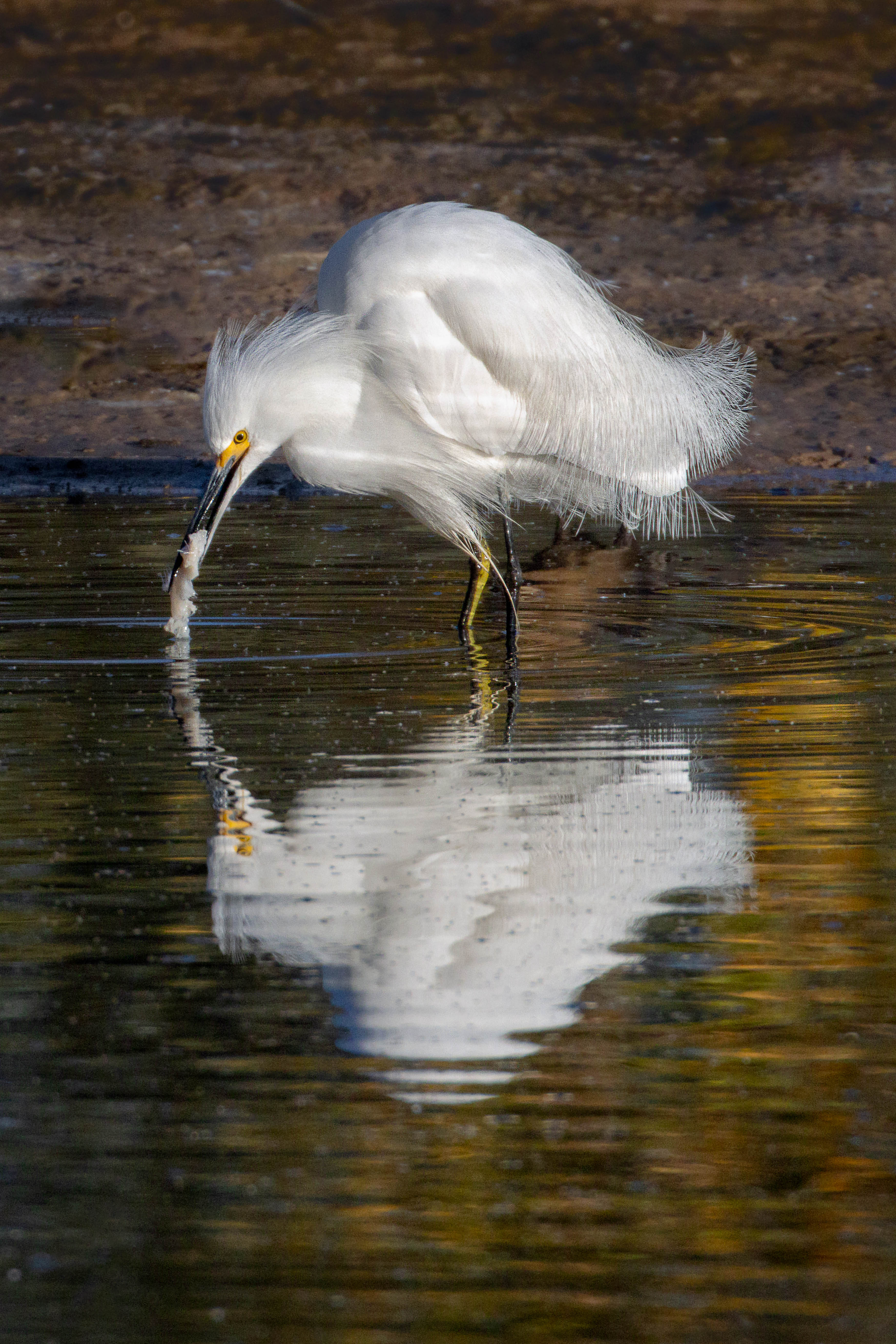 Hi Don, nice behavioral catch of this feeding egret. The light on the bird seems fine to me with the banding from the ripples a natural occurrence. I see the noise in the background as well. I’m wondering if it’s mainly from the large file size of the original. Either way, it should be easy to clean up if desired. The bird/reflection is centered in the frame. I could see more room on the left along with a crop from the bottom.