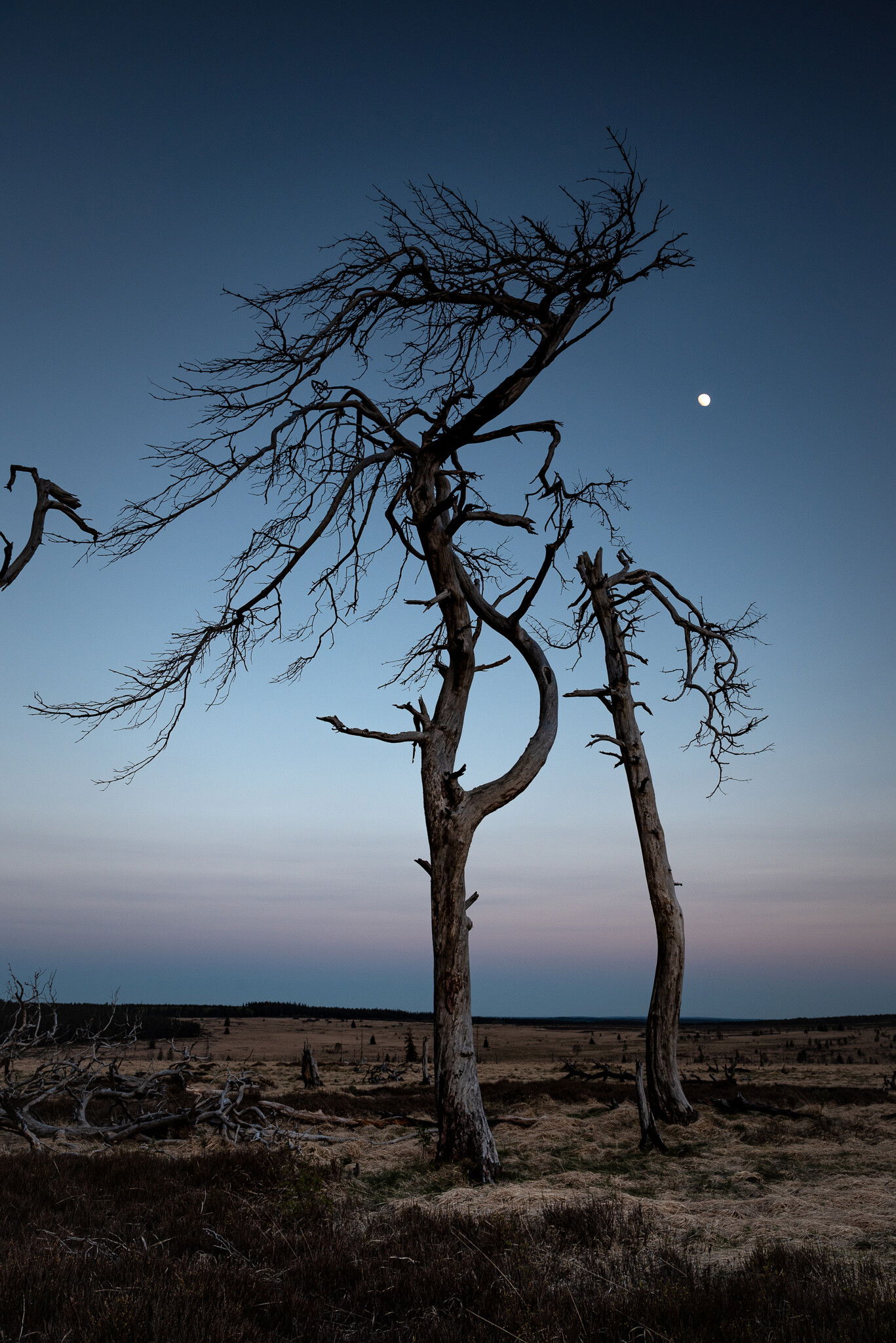My same thoughts here on the moon, Martin. The small moon does not hurt this fine image, but a slightly larger one might really enhance it. The decaying trees and barren landscape, along with the moon, provides a strong eerie feeling to the scene. Which is a good thing from my POV…
