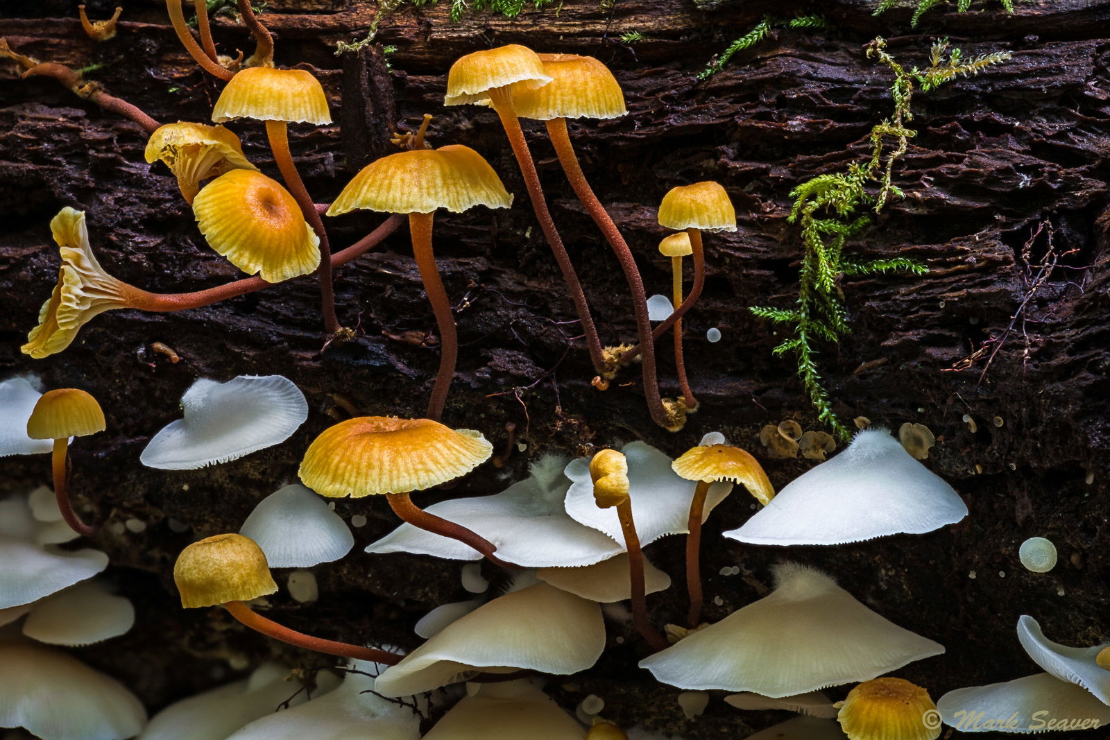 An interesting little micro-landscape Mark! I like the ecological separation of the 2 types of fungi on the log. You handled the whites very well and hope that you snag a few more of this type of shot in the future. Well done…Jim