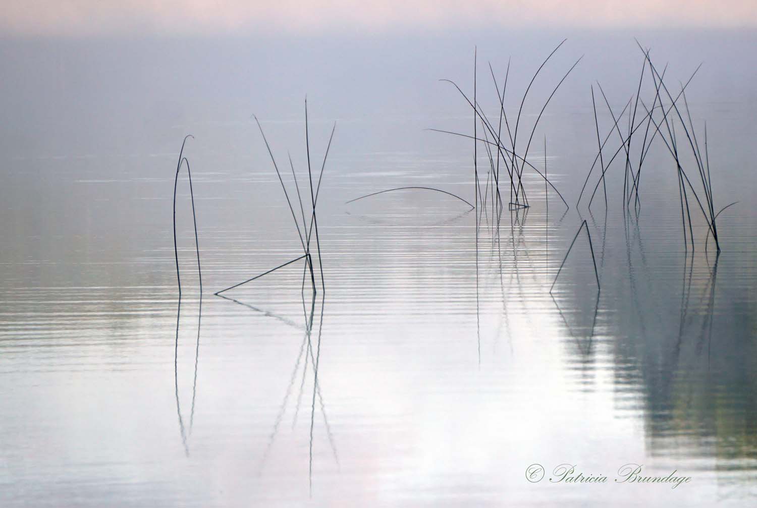 The quiet stillness of the water, the placement of the reeds and the subtle colors in the background come together very well, Patricia. This is very calming to view.