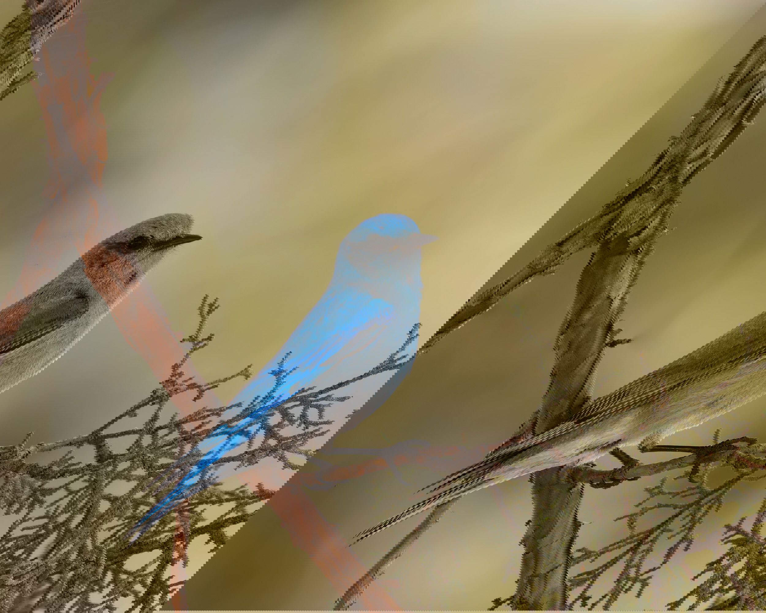 You never know where the birds will show up. My wife and I spent 4 days birding in Malheur NWR (eastern Oregon) where there was more water than has been seen in years and the birding was great. But this shot was taken at a rest stop just west of Burns(the city just north of Malheur). The Bluebird flew into the Western Juniper as we were eating lunch and gave me a few seconds to fire off some shots.