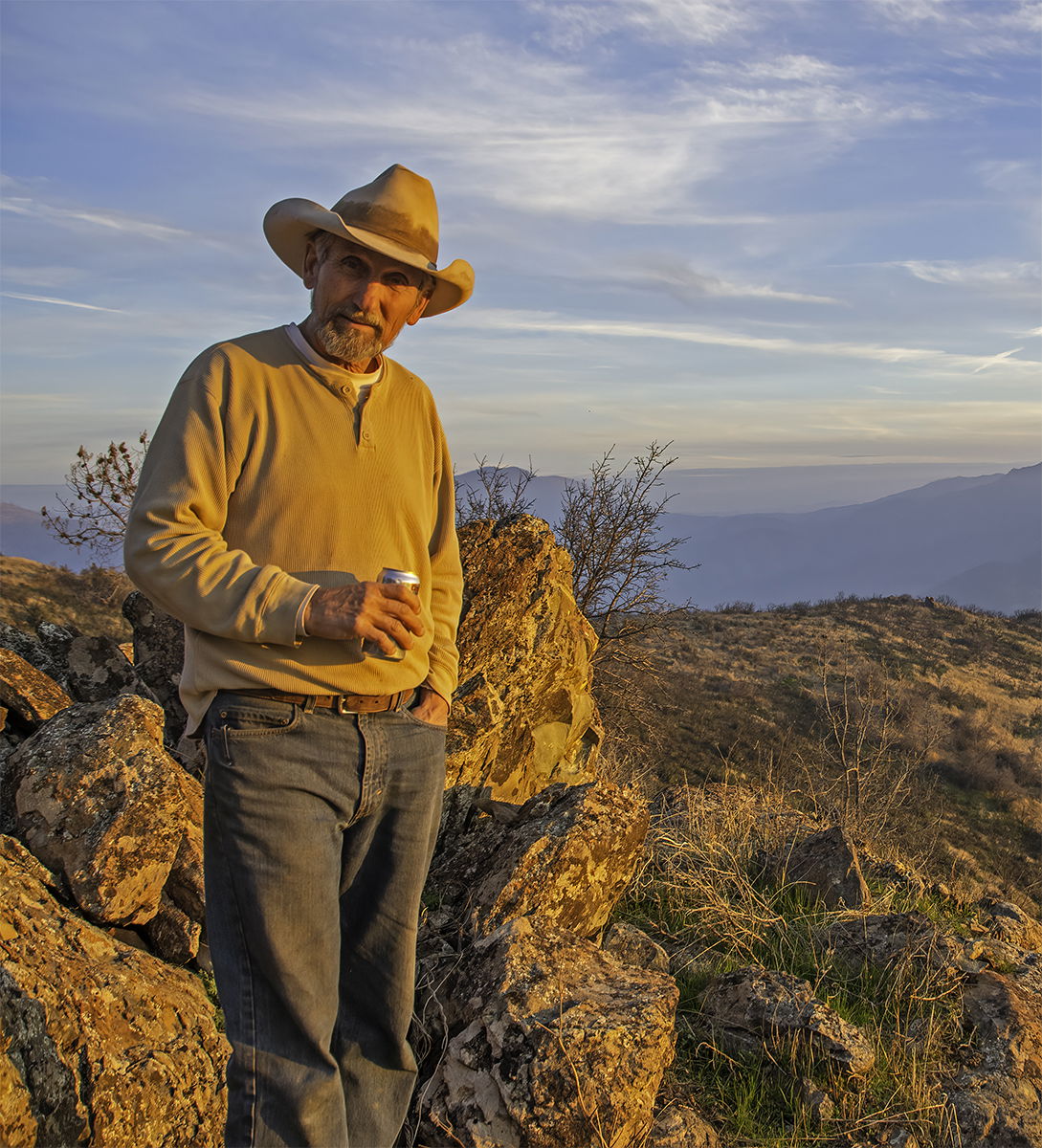 I got this shot of my exotic cattle rancher friend lit by the final moments at the end of a day at the back of his ranch. D500, Nikon 18-200 lens, 1/400th, f 4.0, ISO 320, 18mm, cropped to 3145 x 3466, hand held, AI Clear