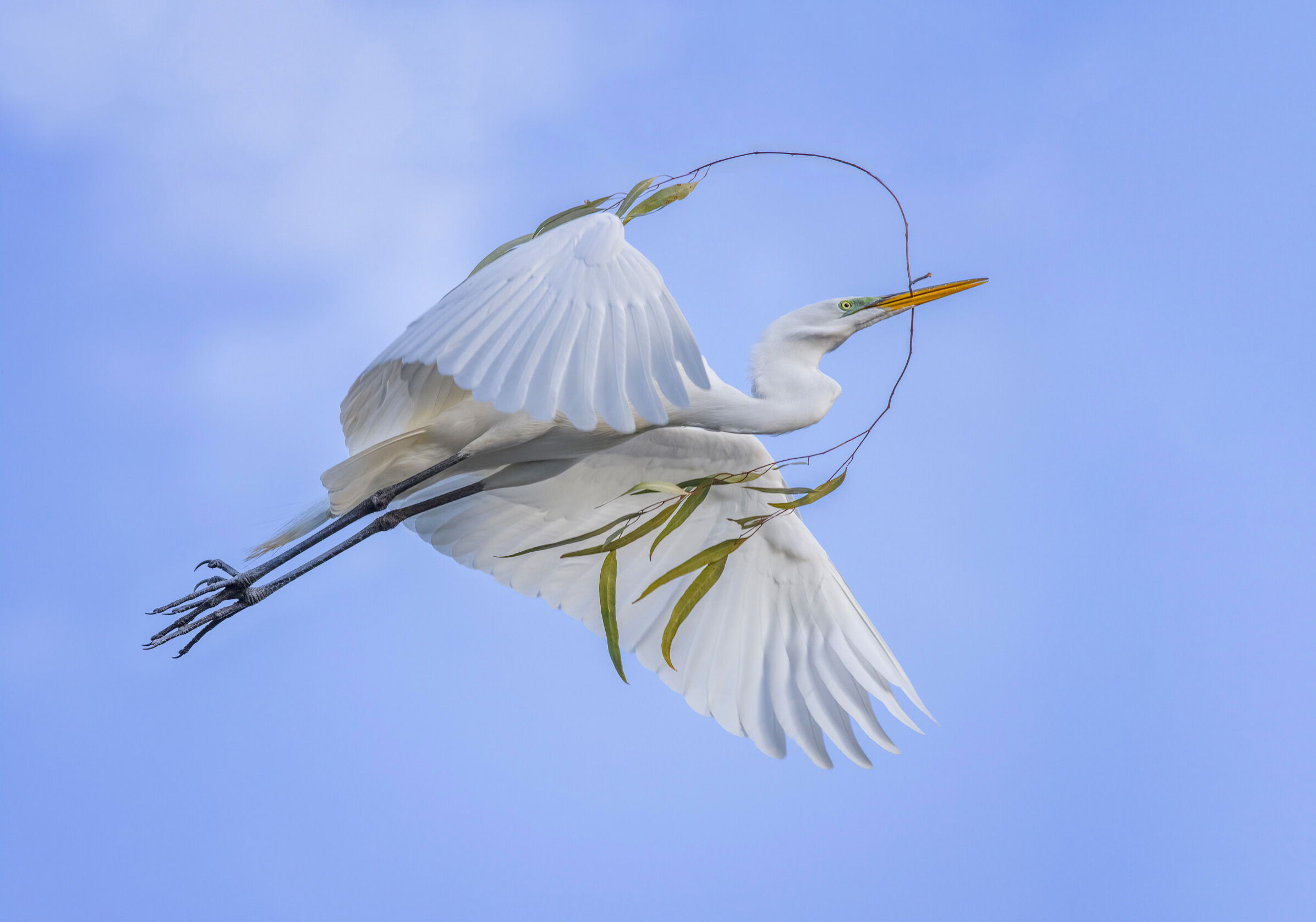 Diane, this is a fine look at the Egret bring back a stick for its nest. The details in the bird look great and the patching looks good also. The bird is too centered from my taste.