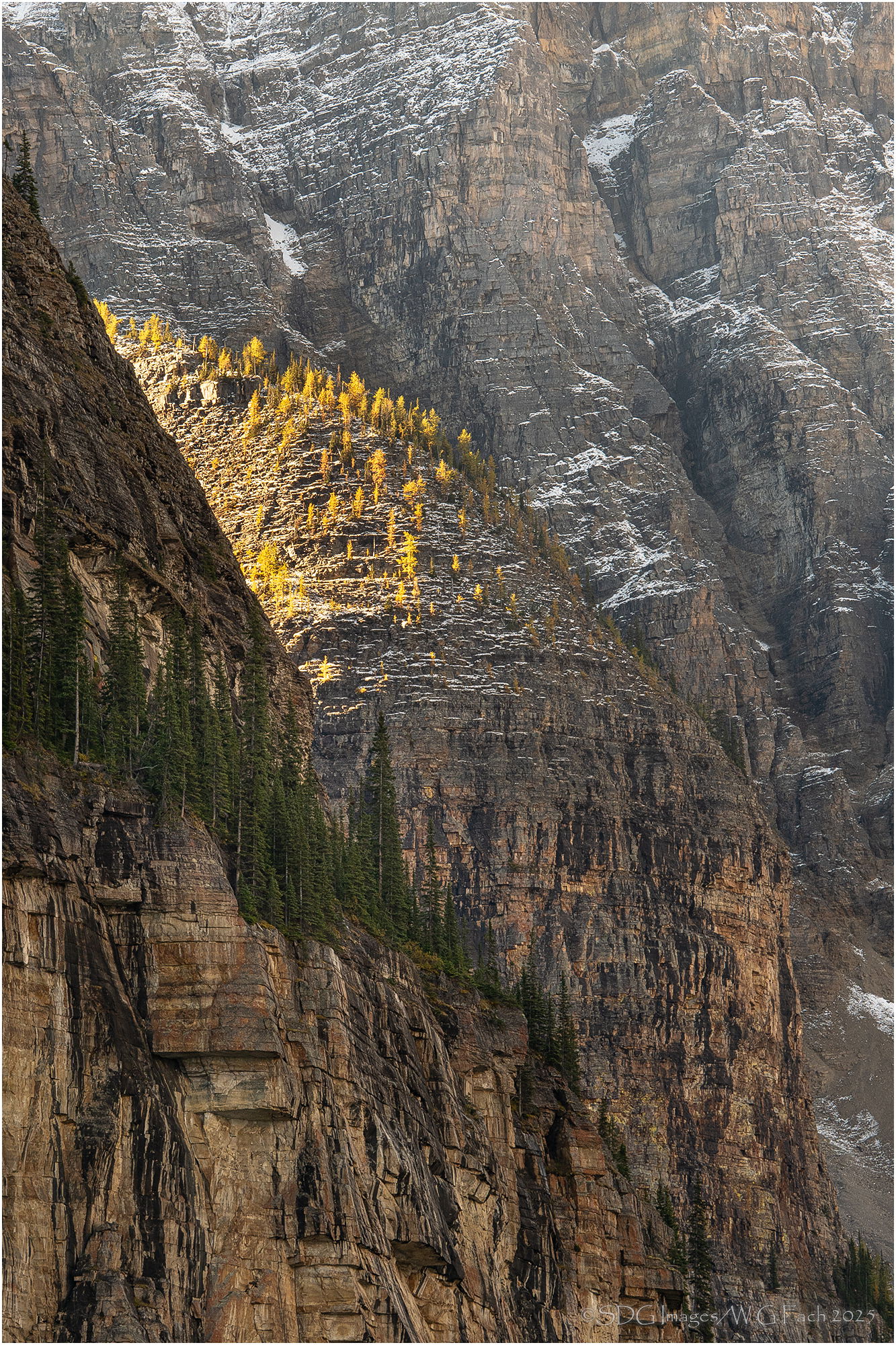 Bill, this is lovely. The glow in the Larches (??) looks great and I thoroughly enjoy the added warmth of the cliffs in the bottom half. They’re a fine balance to the trees and the chilly cliffs up top. Yes, you could crop off the cliffs at the bottom and have a totally different photo that would hold it’s own.