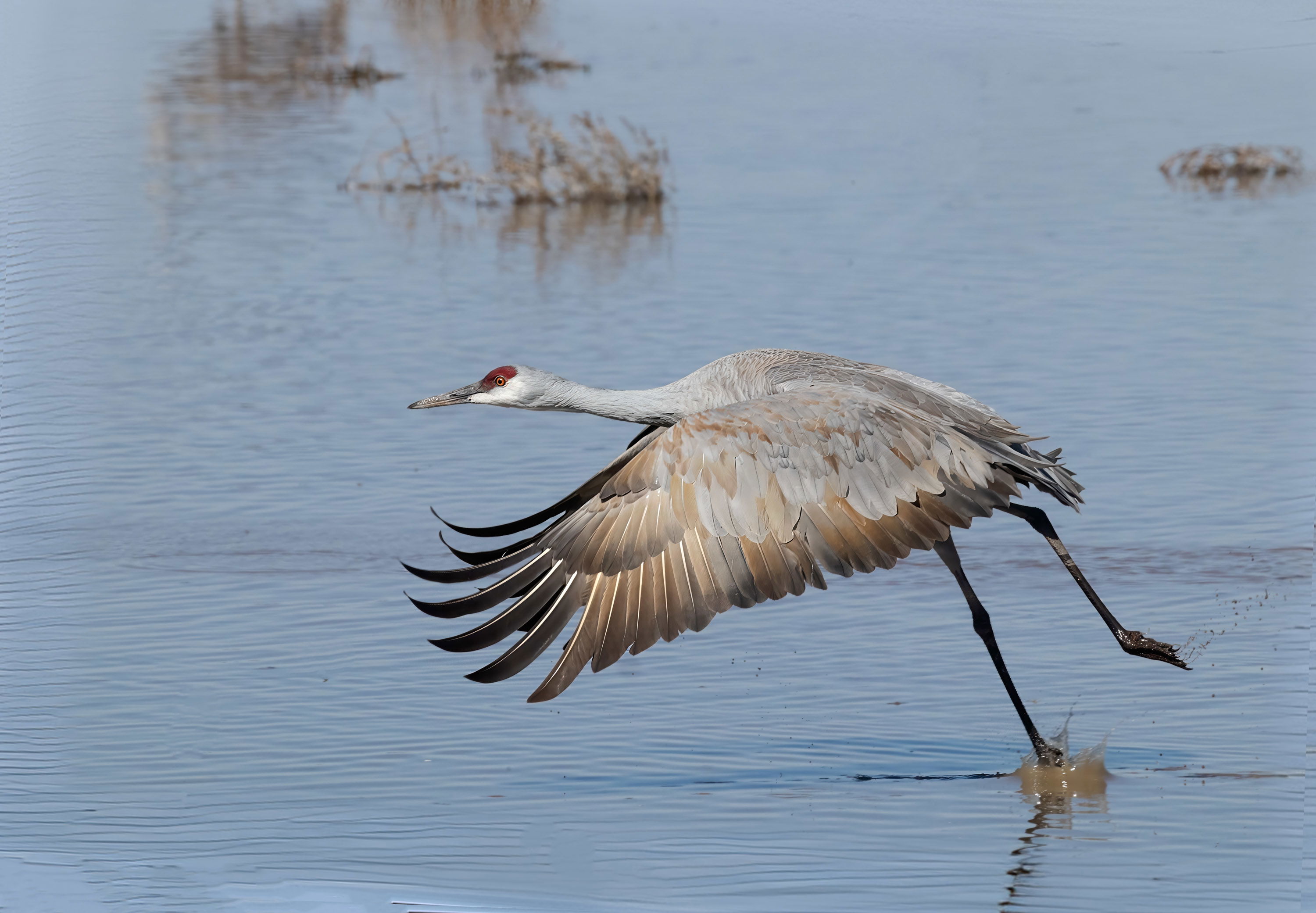 I have 2 photos of a Sandhill Crane just taking off in flight. The photo of the crane with just a bit of his foot in the water. That one was taken at 2:15:20,790 PM and the one with the crane in the air completely was taken at 2:15:21.000 pm. From a bird photograph point of view, which is the better one?