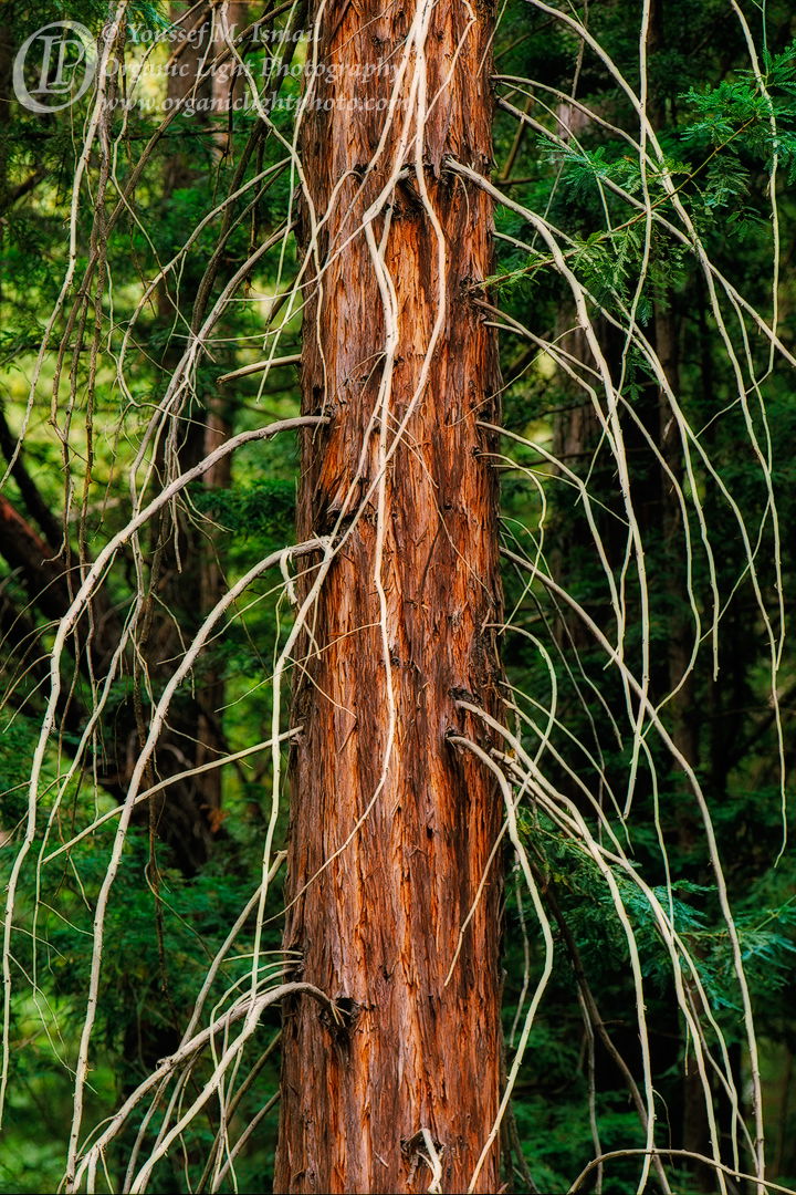 So I have been living among the redwoods for the past 4 years and to say the least, the visual cacophony has been overwhelming, so much so that it has been hard to even find the right composition. Well, this redwood with these old bones of branches has been staring me in the face for the whole time. I finally saw this in the right light and decided to make a photo of it. I think I have captured it as it is.