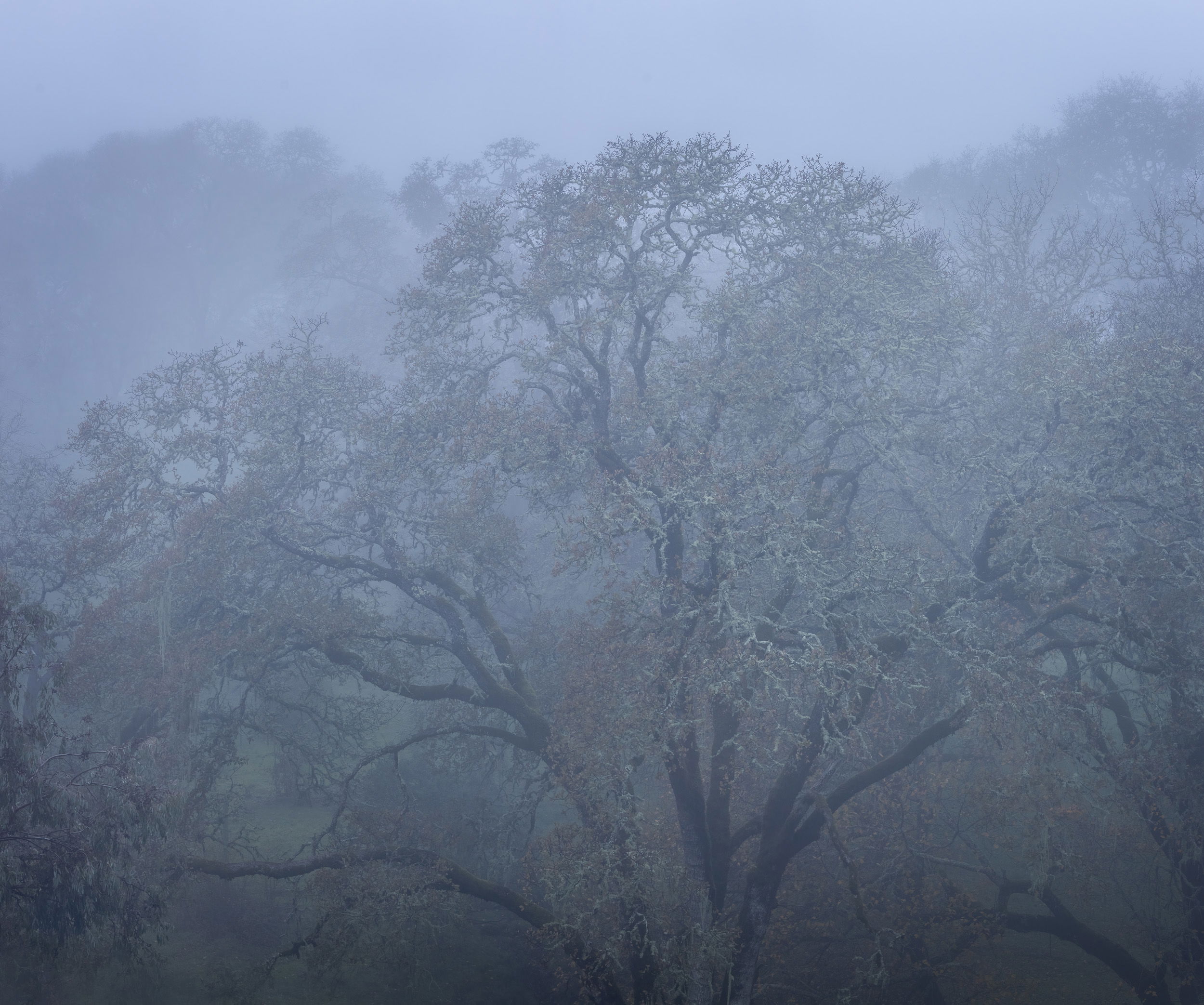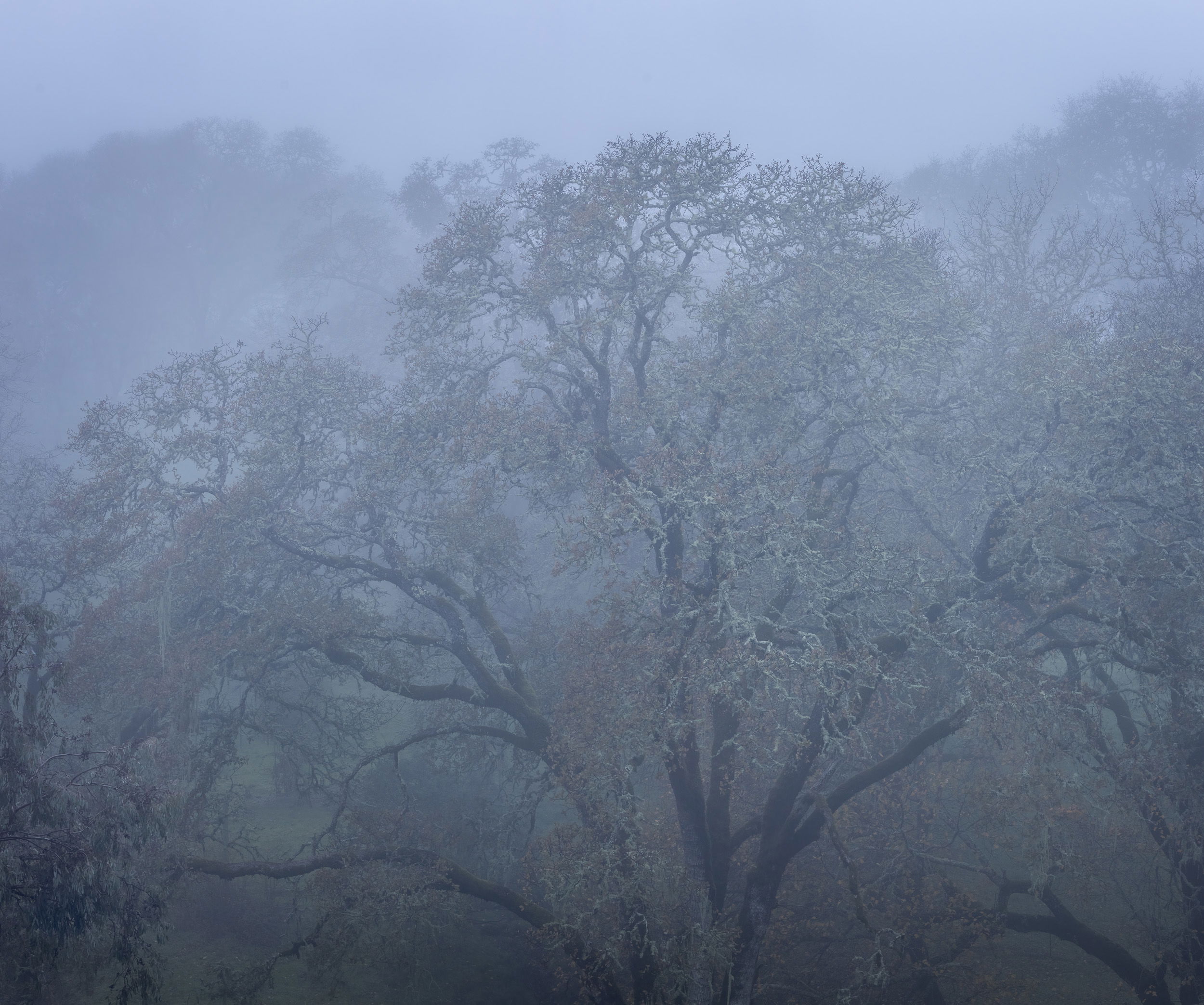 I’m really glad to hear that the threat of drought might be alleviated (but for how long, sigh). I love this kind of image and you’ve done this one justice. The colour is very subtle, which lends it that mood of quiet that is so much a part of mist-shrouded mornings. But what I love best is the fractal branching where every limb becomes increasingly complex the further it get from the trunk. The subtle highlights add and make the image more readable as does the upper middle section that is exposed to the bare sky. The one thing that I’m finding slightly undermines the overall balance of the image is the dark branches from the nearby tree in the lower left - almost but not quite balanced by the dark limbs, lower right. Maybe bringing up the darks in the llc would help.