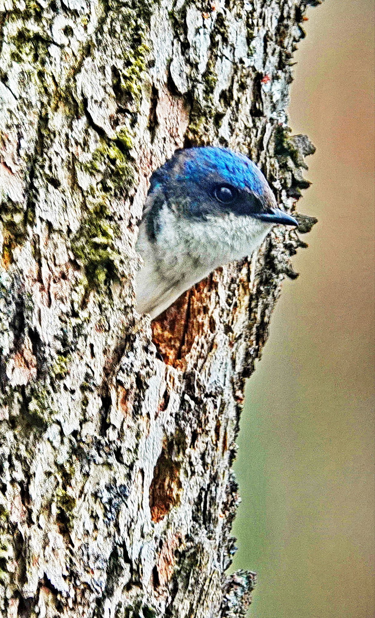 Nice shot of a nesting swallow, Jim. Good job in getting this; my experience has been they are in and out so fast it’s hard to get a shot like this. You might try using the Camera Raw Filter in PS and decrease the clarity on the background and maybe decrease the highlights on the bark, its brightness tends to draw my eye from the bird.