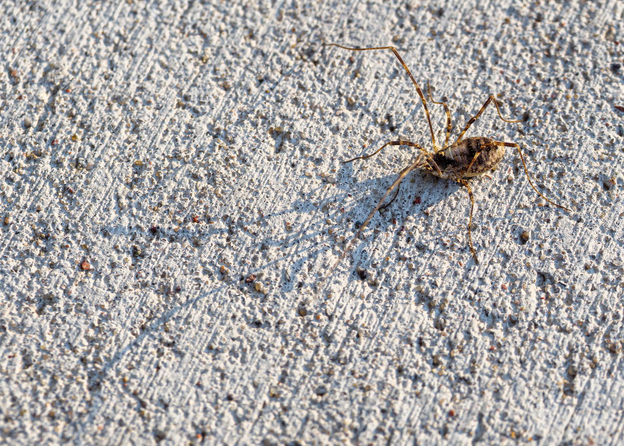 Found this little harvestman on a cool fall day and transferred it to the front steps so I could get some photos. Because it was chilled, it sat fairly still while I got the macro lens quite close. Eventually, it did warm enough to find some nice leaf litter to hide in.