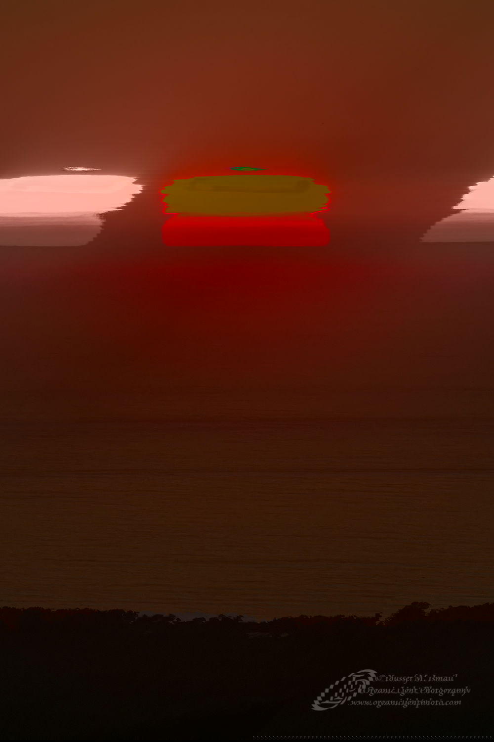 With the D850 in hand this time, I just kept taking photos about one every second. I came away with three frames with the green flash clearly there, this one was the largest and most vibrant flash.