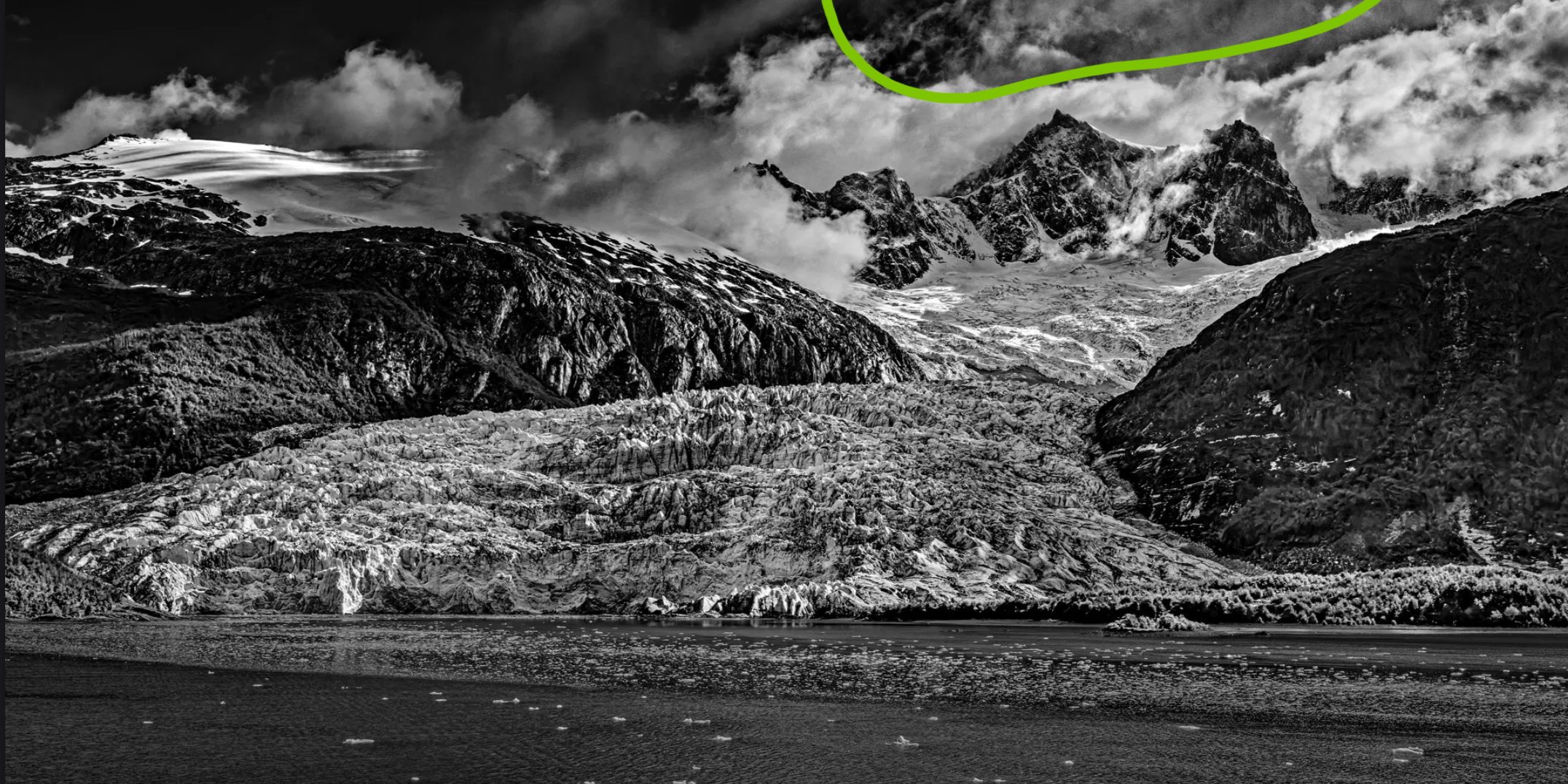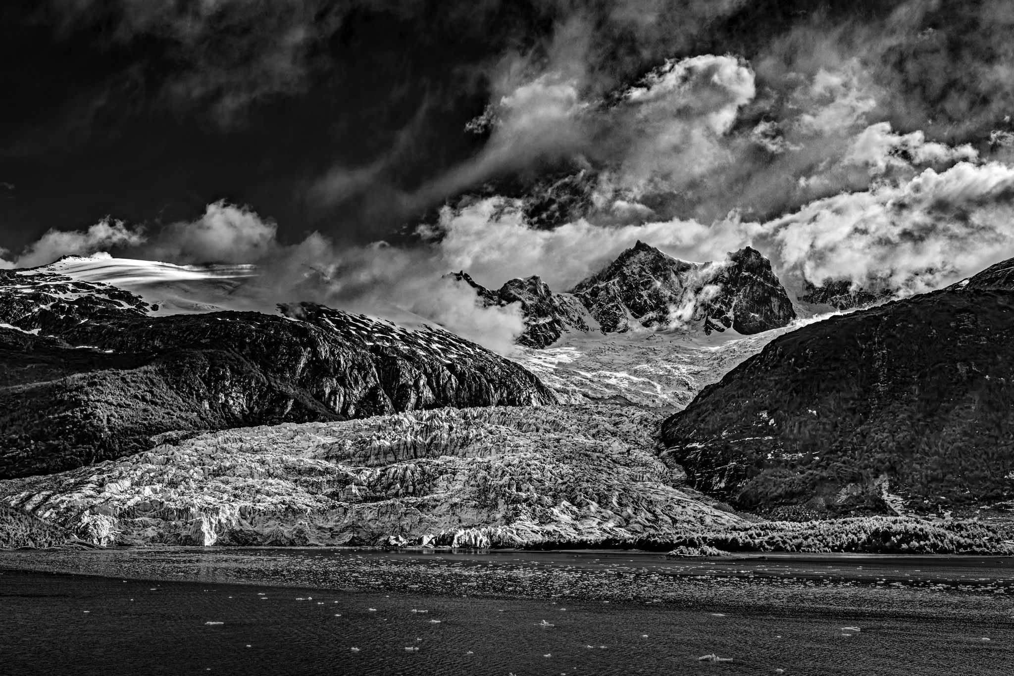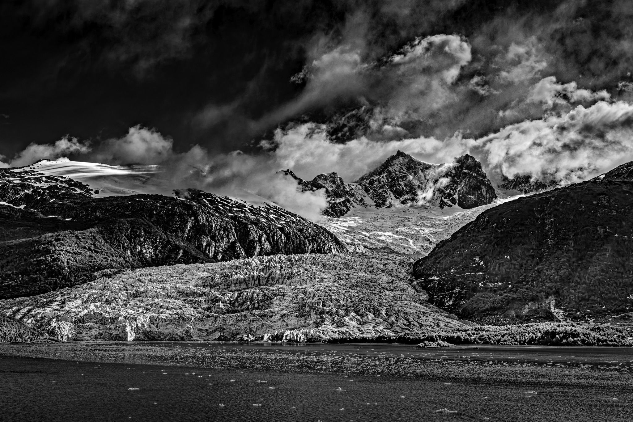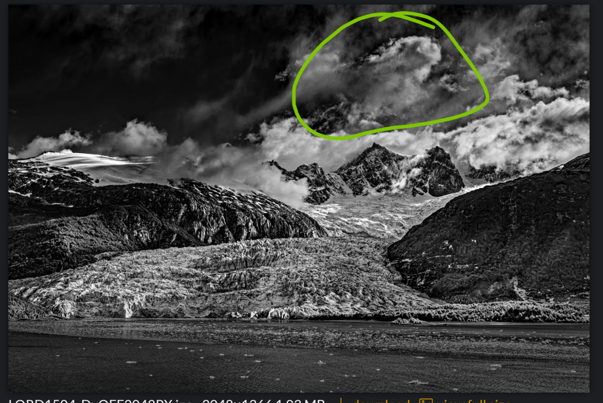 @Marylynne_Diggs , @Igor_Doncov I do appreciate your suggestions. I cannot bring myself to crop, sorry. There are no mountains behind the peaks in the center. I have worked on the clouds and the glacier field in the foreground. There are several other changes as well. Hopefully the changes will help to better inform you as viewers of the presence or lack of presence of elements in the scene. As for the color version, I may post it later but I definitely feel the monochrome version is far superior. This was shot in the equivalent of mid-June in the northern hemisphere which meant there was no fresh snow on the lower glacier due to rising temperatures.