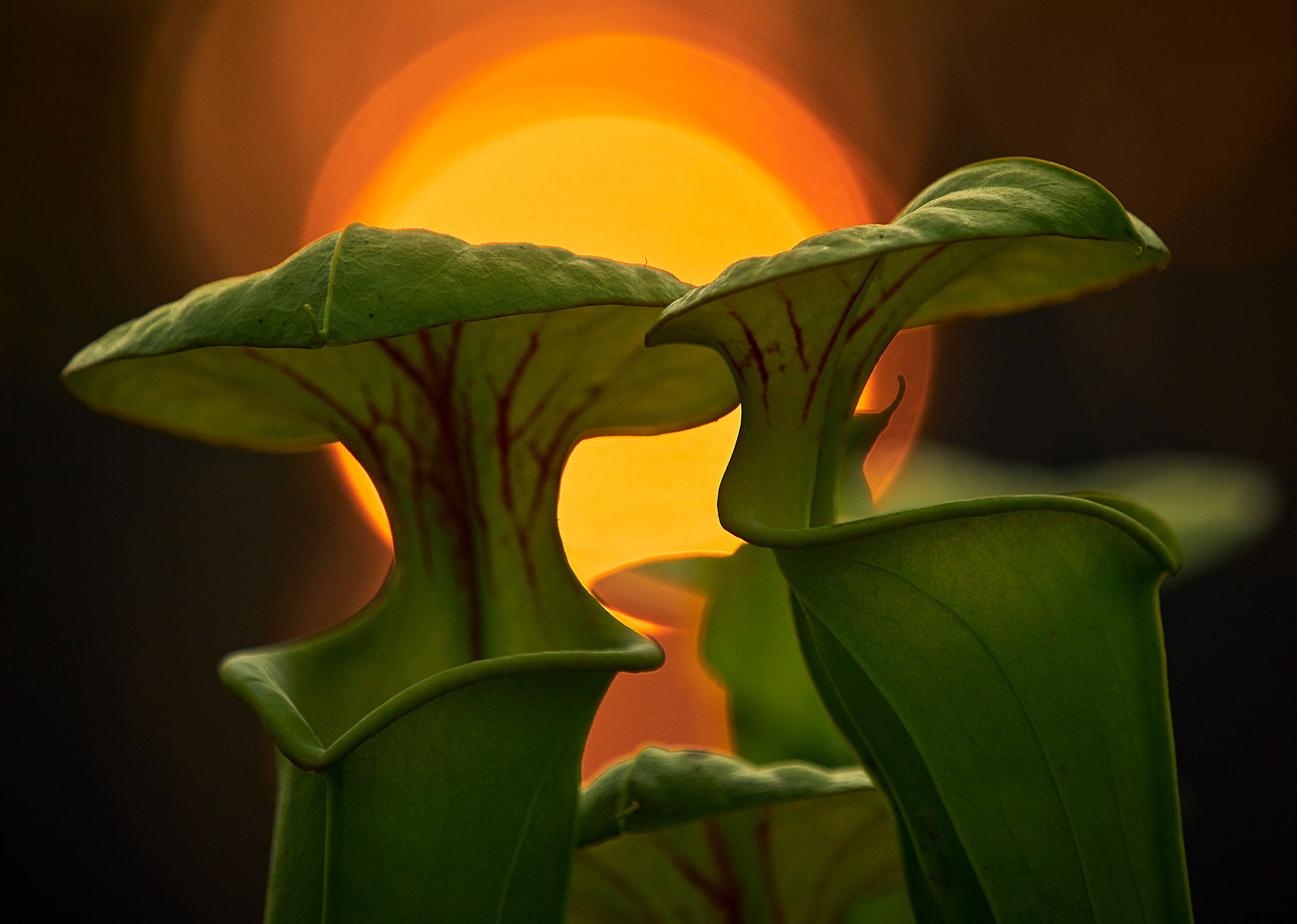 Sarracenia flava with their “mouths agape” during sunset. This was taken at Green Swamp in North Carolina.