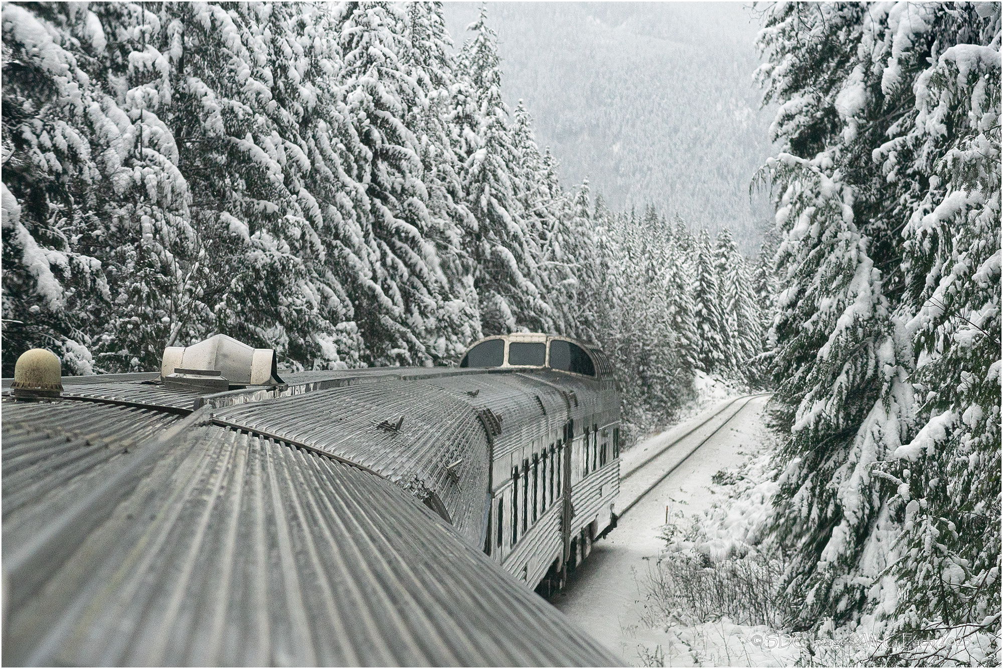 Oh wow, Bill, what a train trip. Beautiful “winter wonderland”. I’m sure you could have done without the way it ended, but the scenery was gorgeous. The way the train and the tracks lead the eye through the image is very nice. Either way for me too, B&W or as is. Well done!