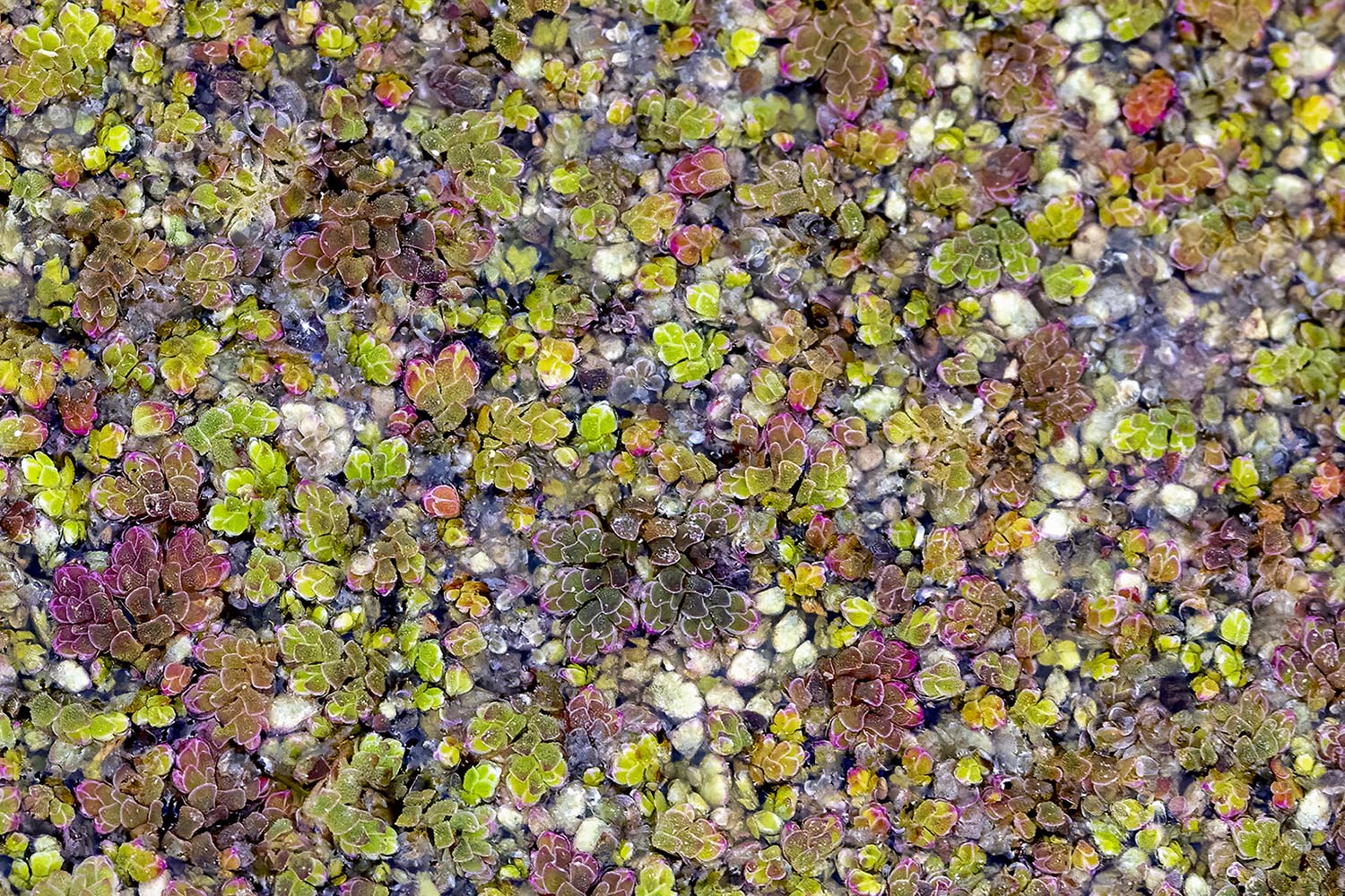 Larry, this is a great looking batch of “pond scum”. The variety of colors makes for a fine abstract with the shapes of the leaves showing well and adding interest.