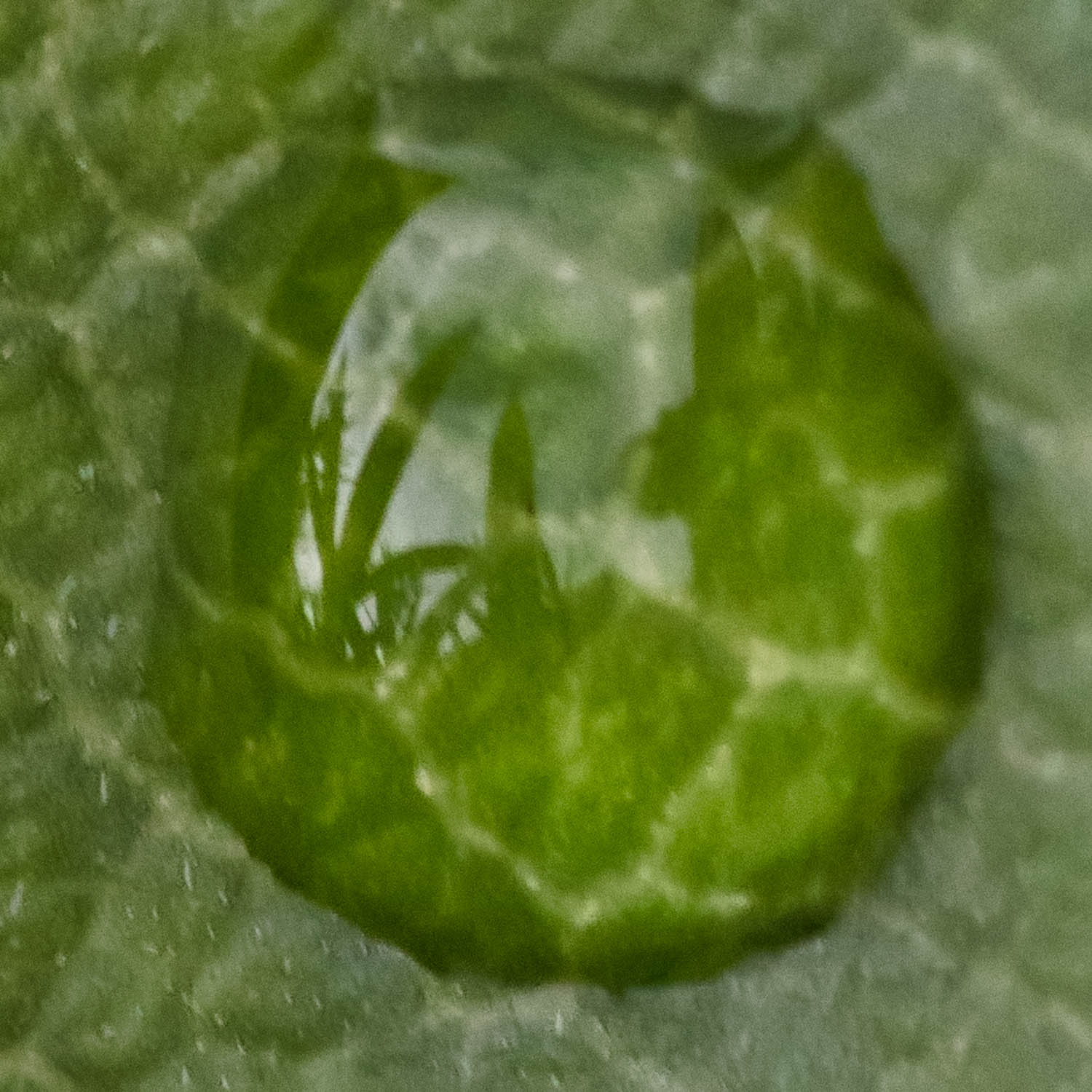 Dean, experiment is both fun and necessary. The reflections show decently here, but everything looks a bit soft. My first thought is that the softness is due to the combination of the monopod and the magnification. I see what I think is motion blur in the whitish spots on the leaf in the lower left corner. When working at 1:1 your stability and focus need to be super and I don’t think a monopod allows that. Your 90D is a 1.6 factor crop sensor, that means that when the lens is focused at it’s closest point, your magnification is 1.6:1 and that’s without the extension tube. With the extension tube, you get extra magnification set by the ratio of the tube length divided by the lens focal length, so with your 180 and 25 mm extension, the magnification gain is 25/180 = .139. If you were at minimum working distance, your magnification is 1.6 +.139 = 1.74.