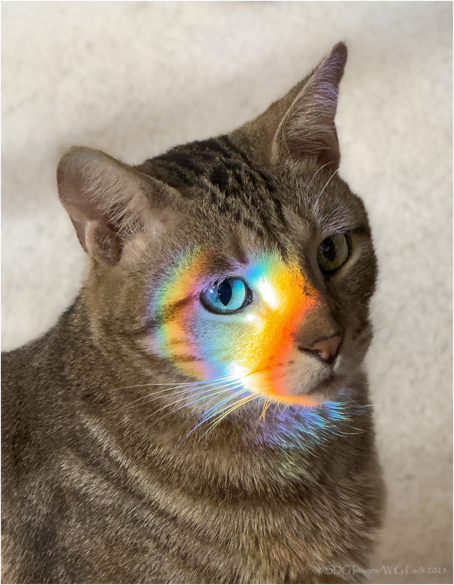 This is Erin, our youngest and newest member of the family. She was sitting in the living room yesterday morning when light coming through the leaded glass on the front door hit her just right. I didn’t want to take a chance on getting my camera so I just popped off a few shots with my phone. She posed for several minutes with the light hitting her face at different angles but I liked this the best.>=))>
