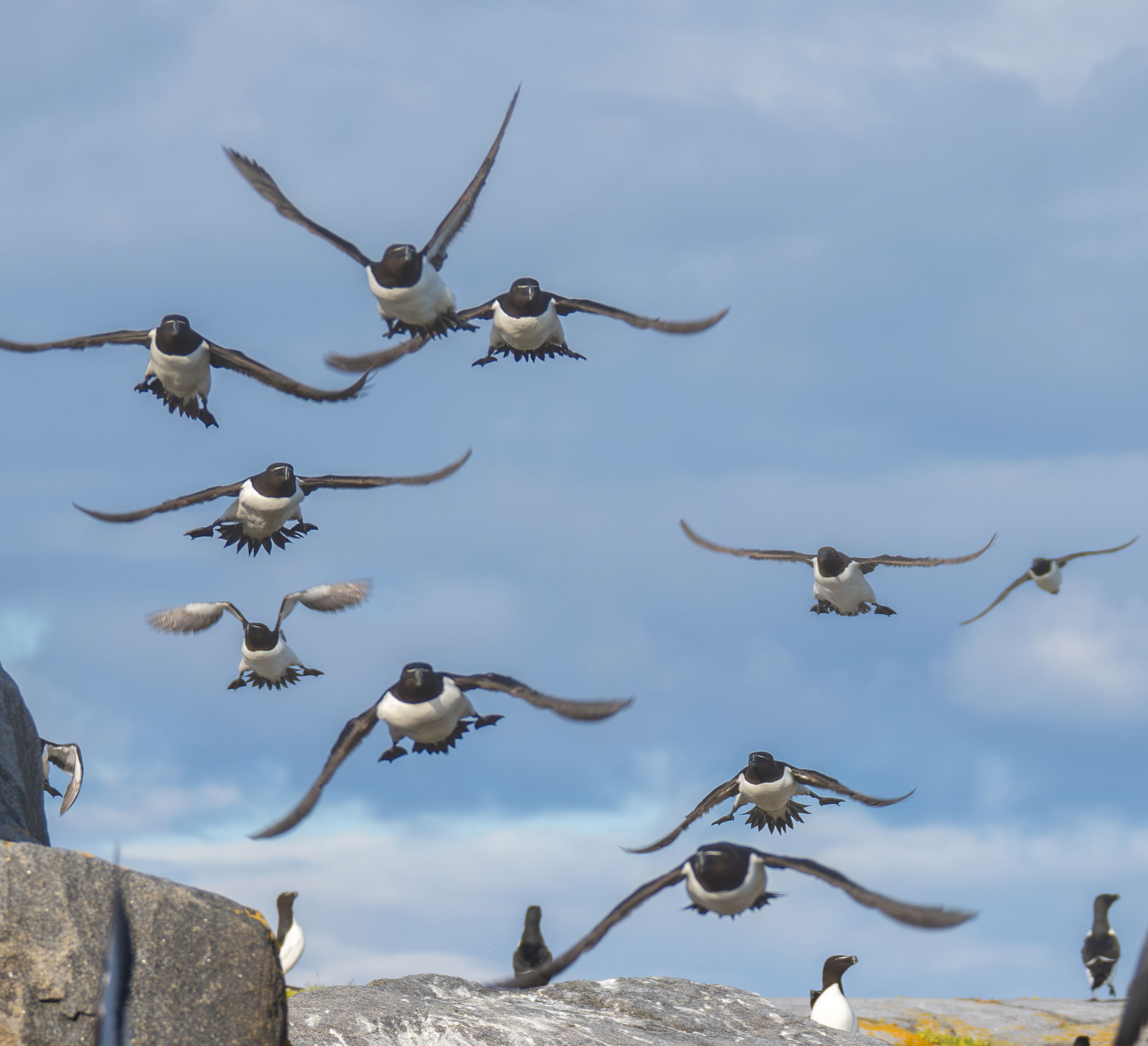 These Razorbills were very active, they were constantly flying, landing, flying again.