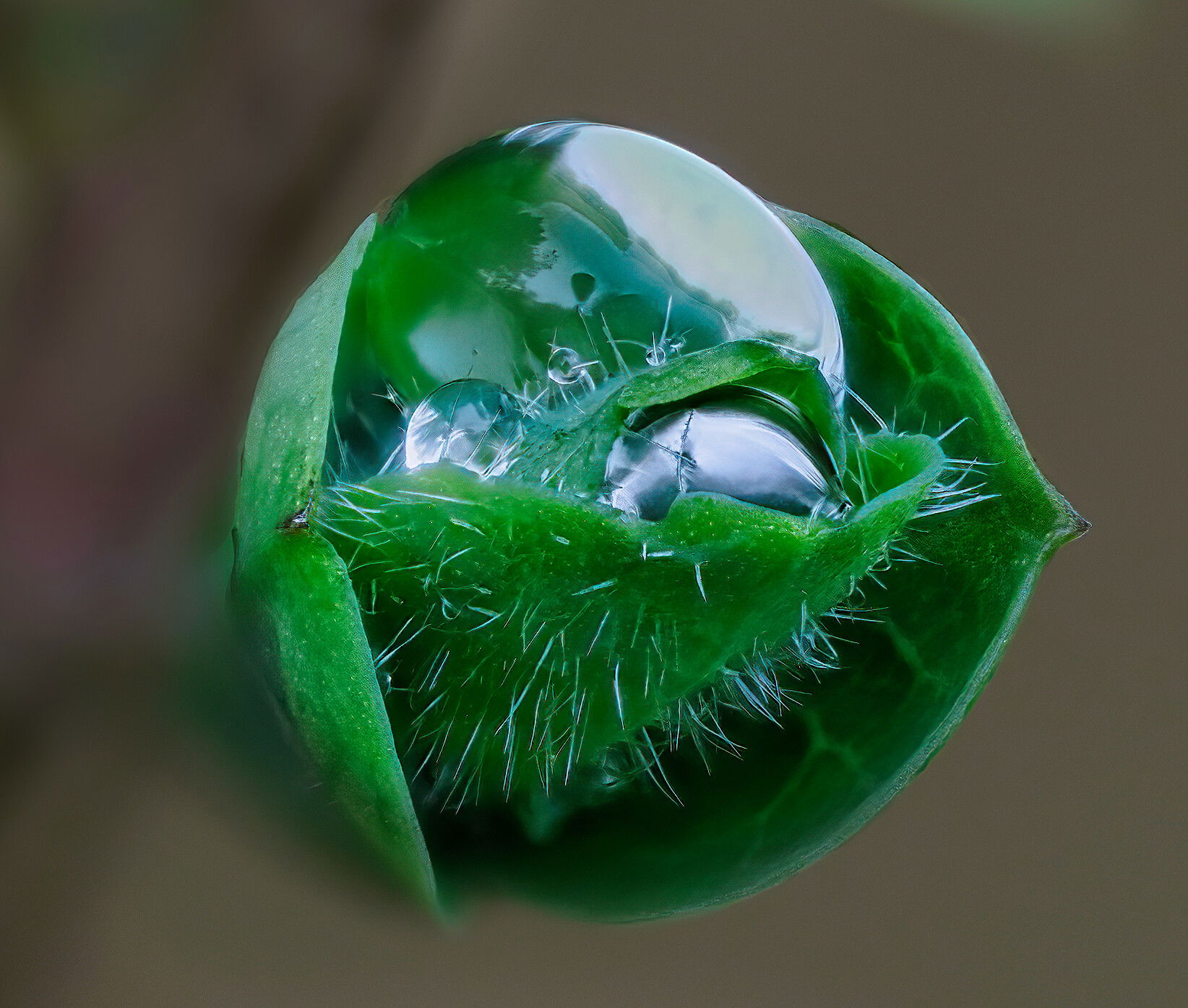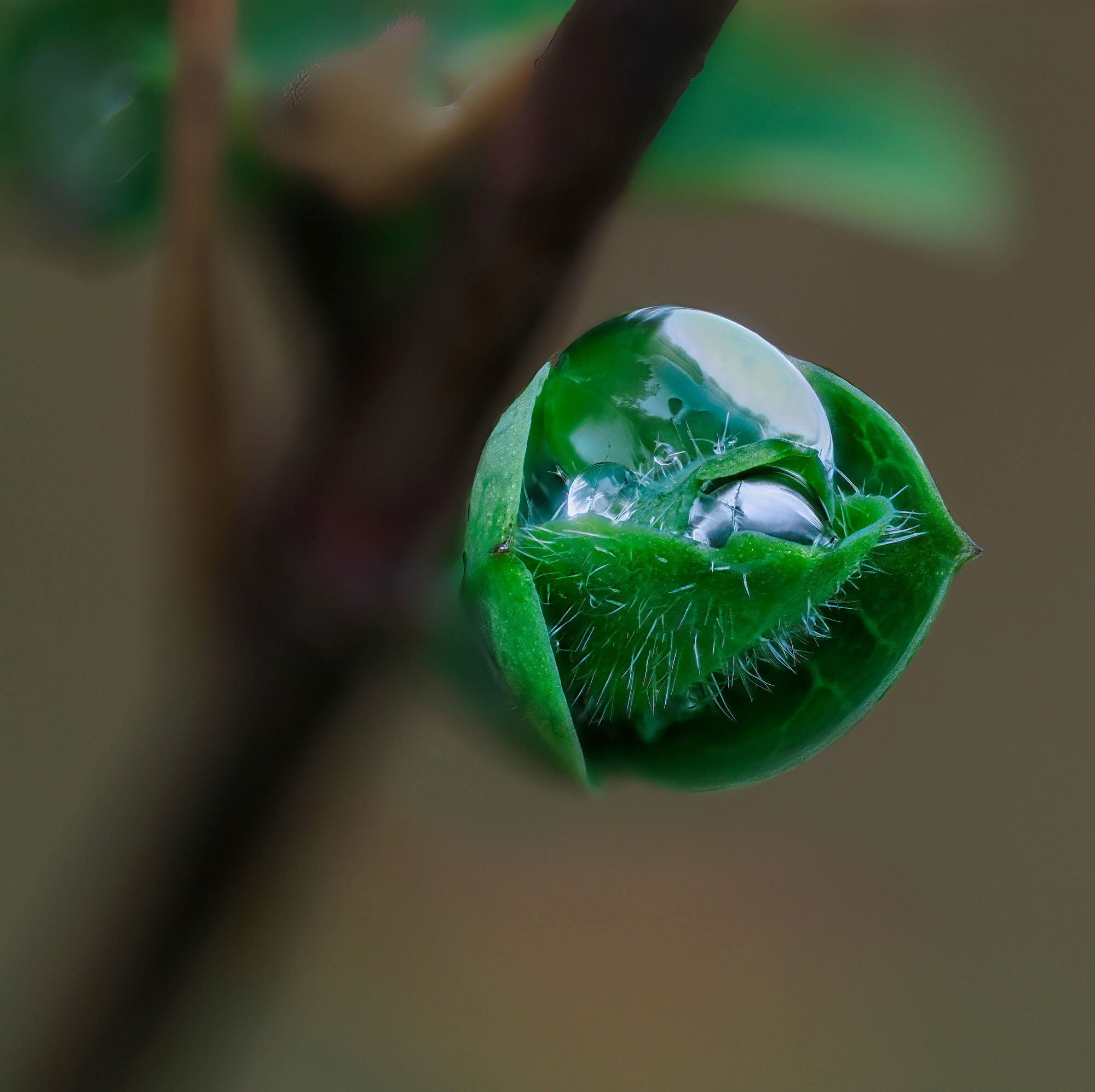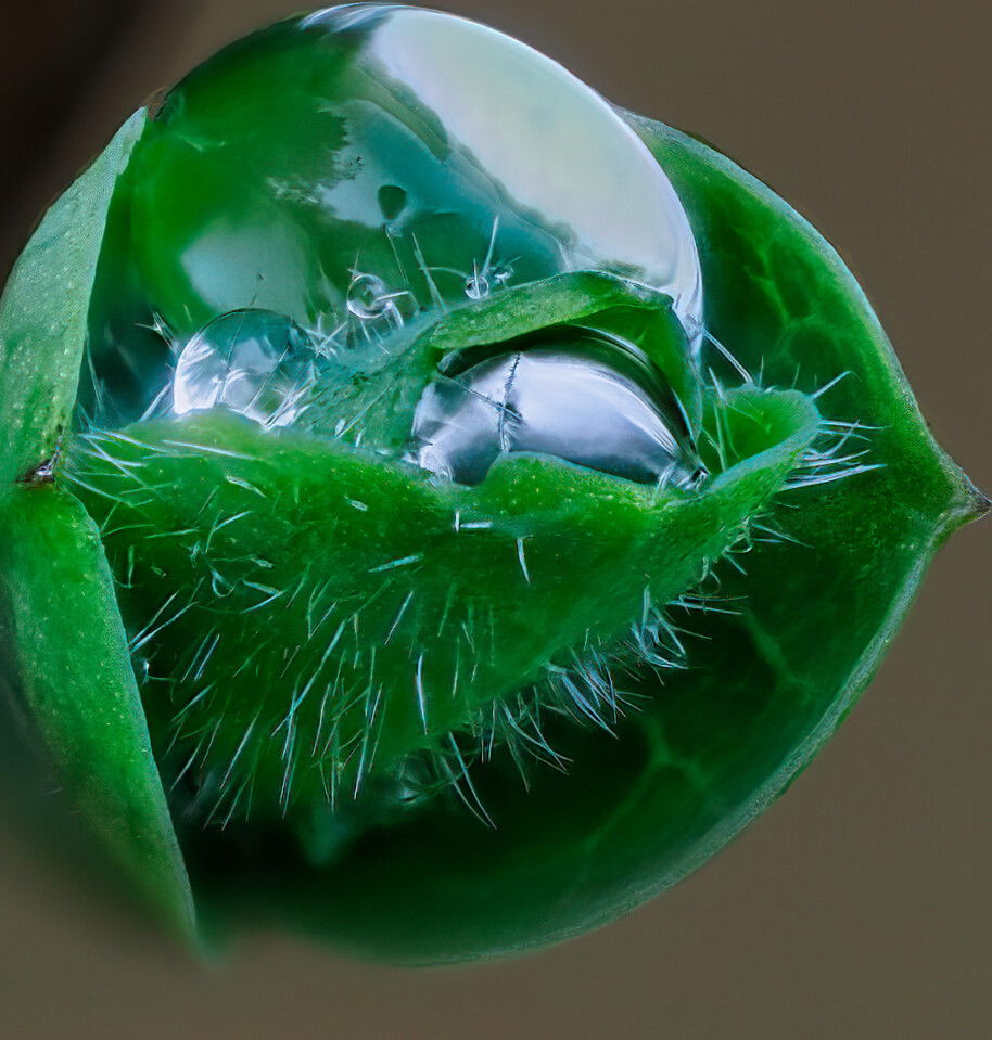 Ola, I am enjoying your capture here of the “Pearls” on a bud. I have not started using focus stacking at all, so am of no help at all in that area. I love the bud and the droplets you captured. The dark stem seems a bit too dark and distracting for my taste, but otherwise, to me, it is a great capture. Hopefully our focus stacking photographers can help out in that area.