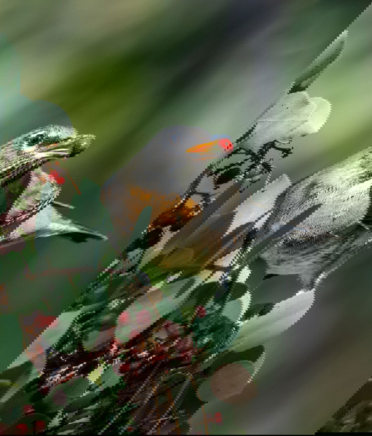 The composition looks fine, Dave, and I love the pose of the robin with the berry in its beak. You might want to go back to the raw file and work on the highlights. There’s a completely blown white patch on the throat and I think you could bring out more texture in the plumage on the cheek. A fine shot of this activity and the background is very nice.