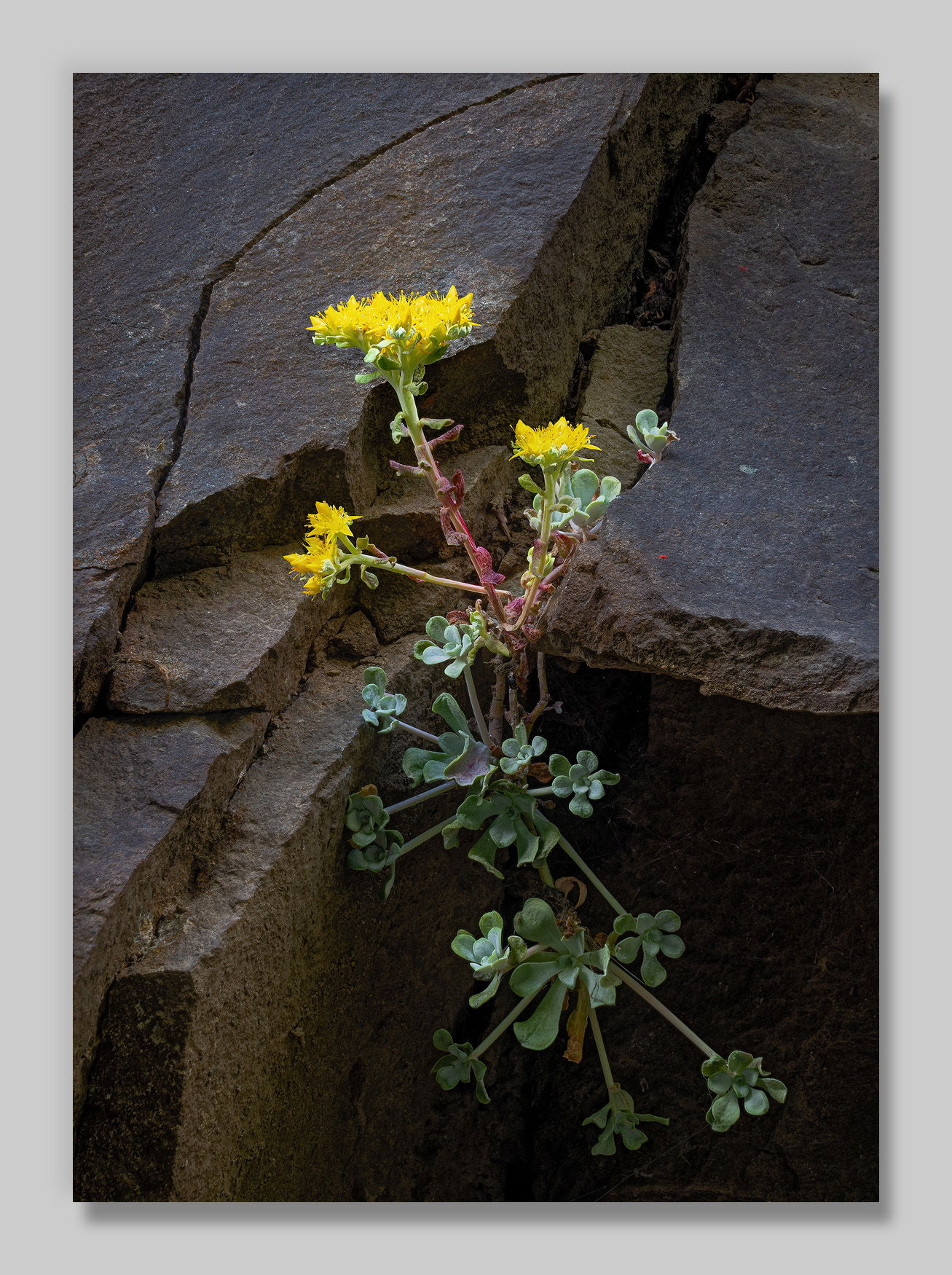The starkness of this image is very appealing. The texture of the rock complements the stonecrop. Comp is fine and I do not have any nits for you. Awesome shot…Jim