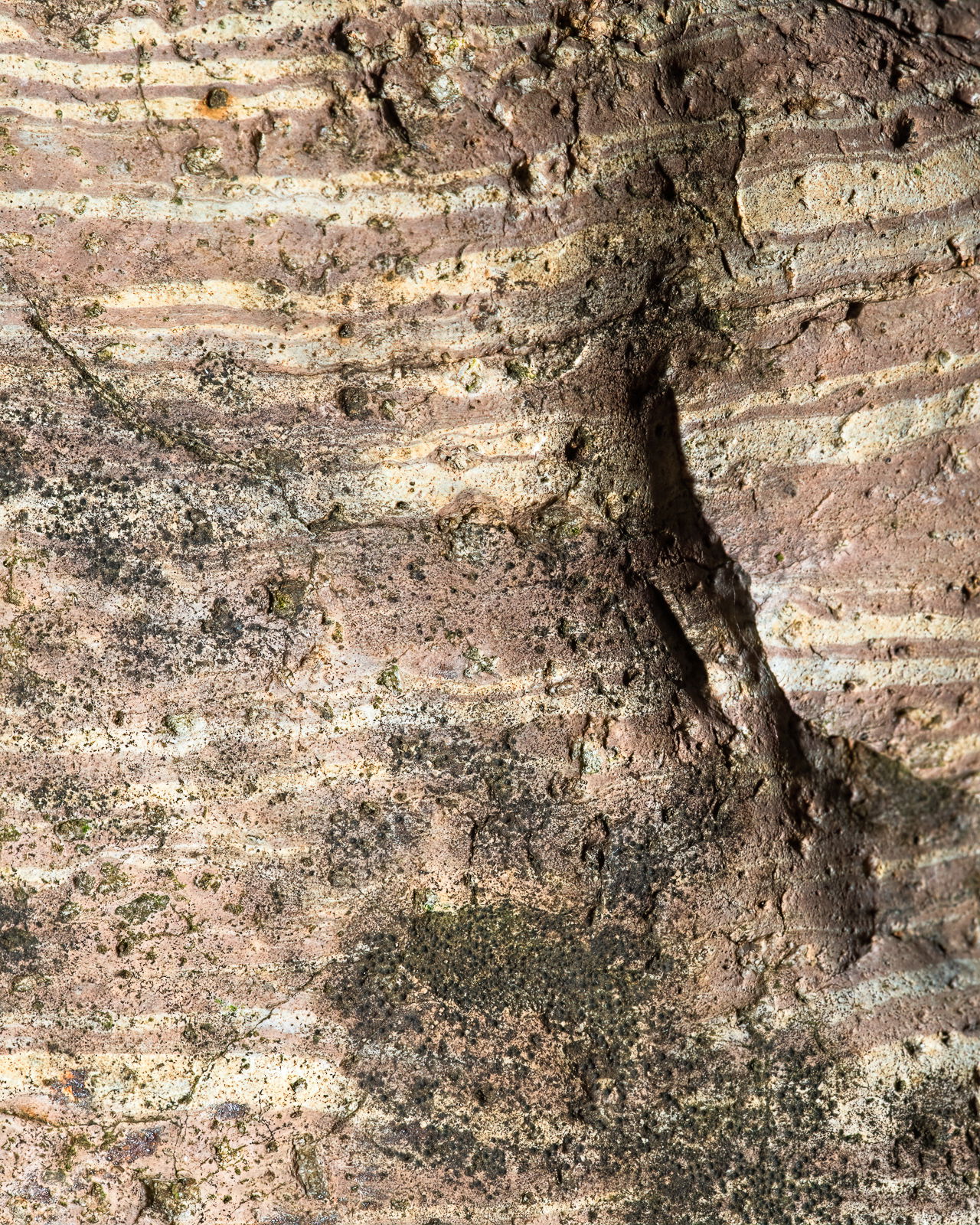 Looking at the smaller image, I had no sense of scale so this could be seen as a large rock face. Interesting image with the streaks through the rock and lichen adding contrast. Well formulated - I like the light with the slight bit of shadow. Well done.