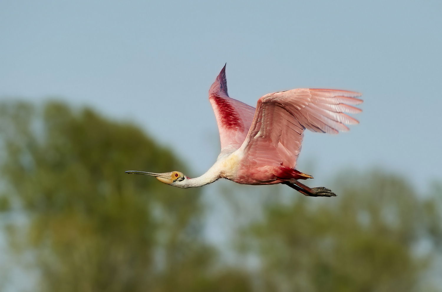 Excellent detail in the Spoonbill, Lyle. Good wing position and the flight angle is perfect. You might want to play with the tree behind the head. The darkness of it tends to pull the eye. I think if you could make it about the same brightness as the tree on the right it would work very well.