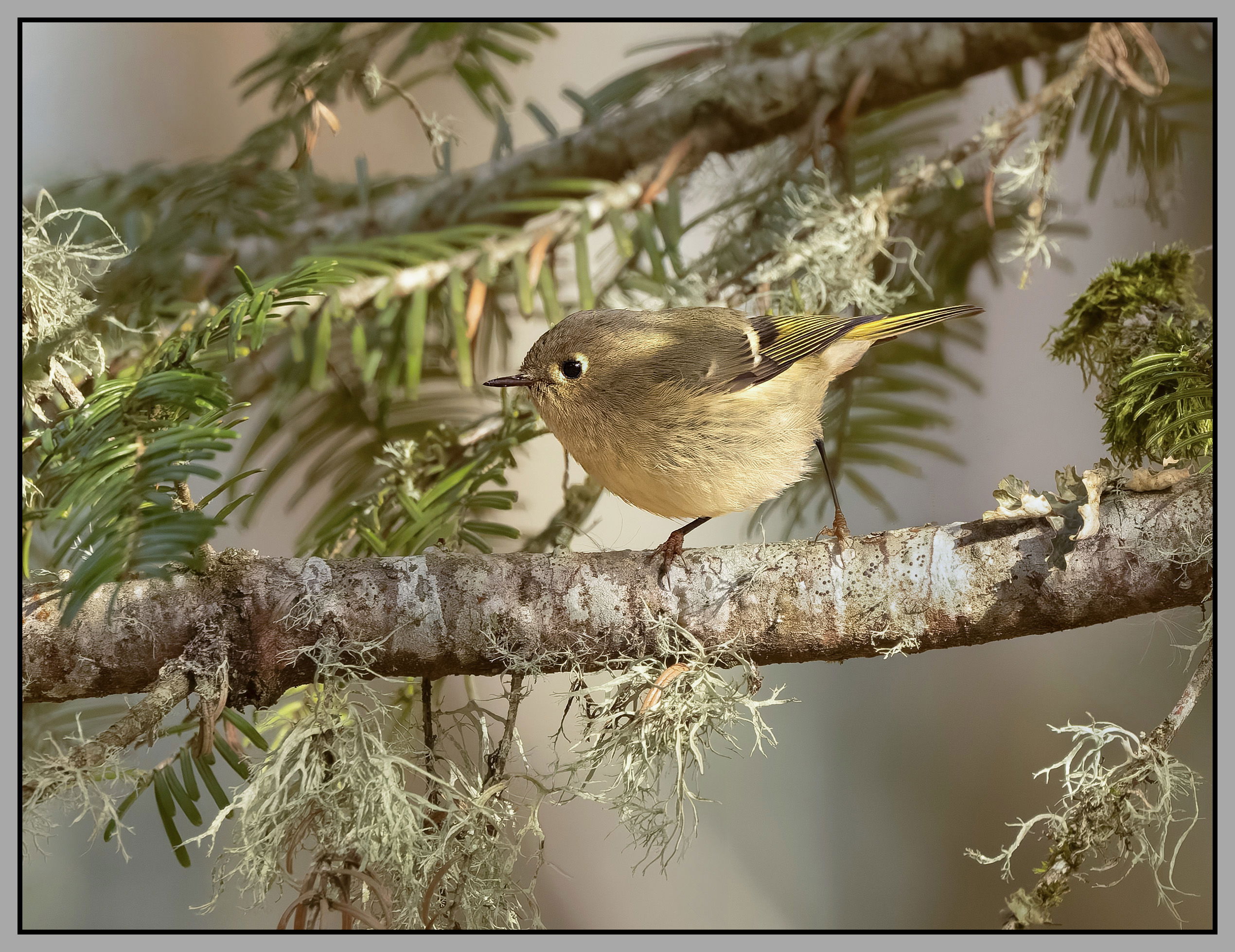 This image makes me think of walking through a forest with sunlight streaming through the branches. I was lucky to get the kinglet out in the open and still for a fraction of a second.