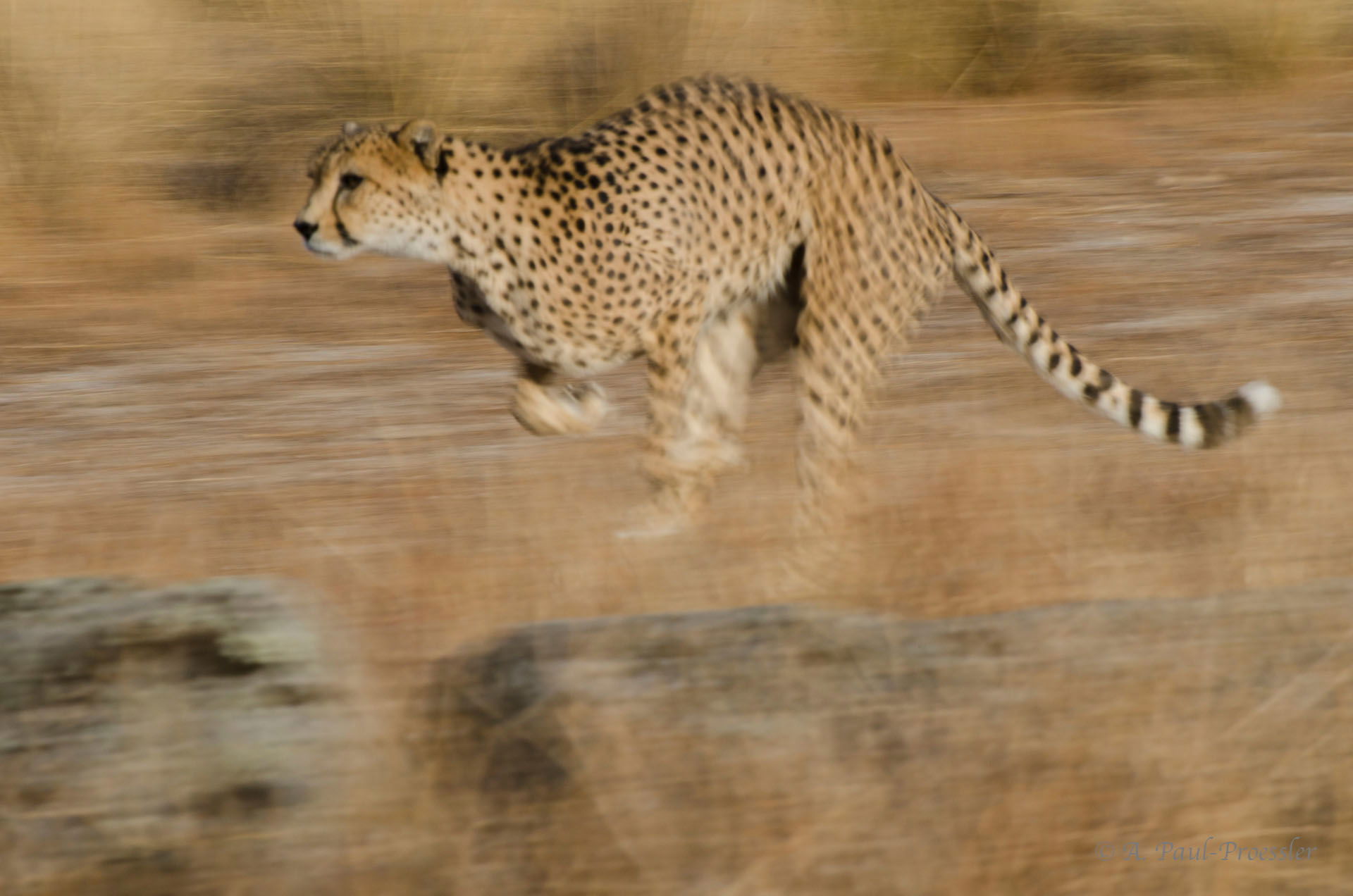 Panning shot of a Cheetah. In each of the seven images one part of the body was reasonable sharp.