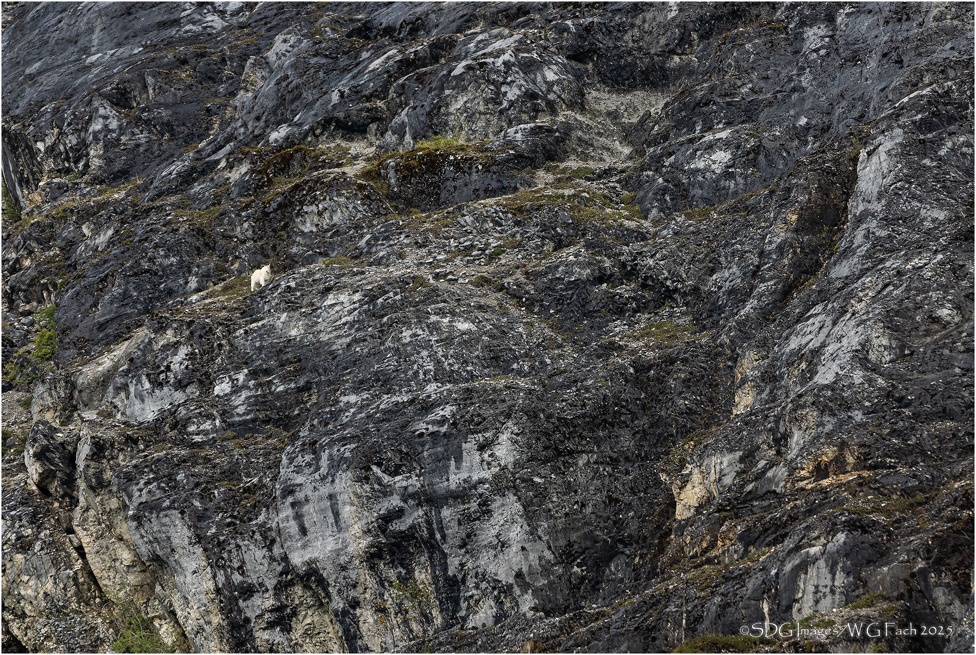 During our trip to Alaska in 2017 we took a cruise on a small ship (60 passengers) and spent a couple days exploring Glacier Bay. This is one of the islands along the way that supports a colony of mountain goats. Apparently when the glacier receded the goats were left stranded on the island but since no predators were similarly isolated the goats have thrived. I suppose the only real danger posed for them is slipping off the cliffs. Spotted this guy as we sailed by. He seemed unperturbed. >=))>
