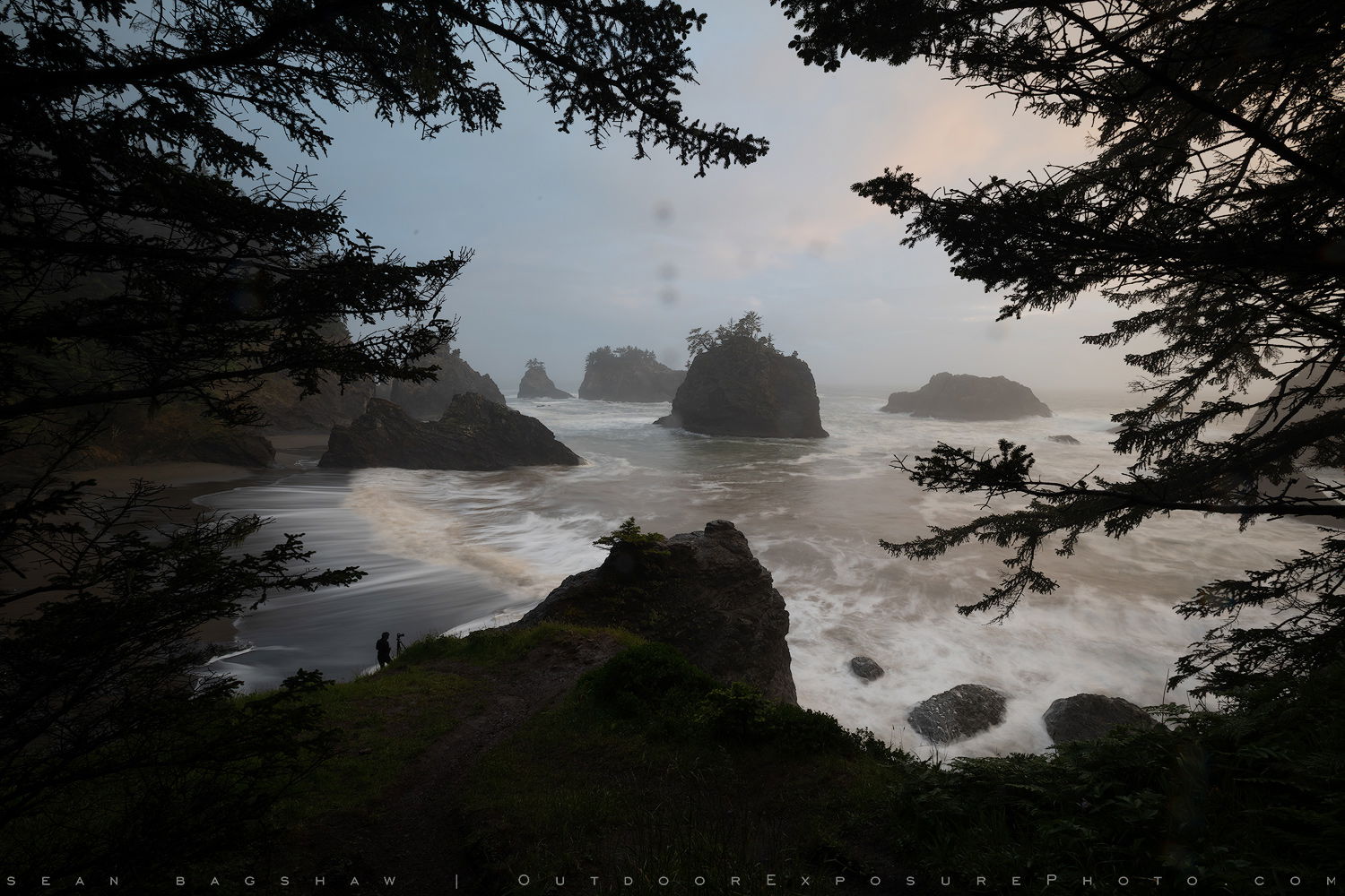Slight vertical transformation to remove some distracting branches along the top of the frame and give the sea stacks a small boost in height to counteract diminishing by the wide angle lens.