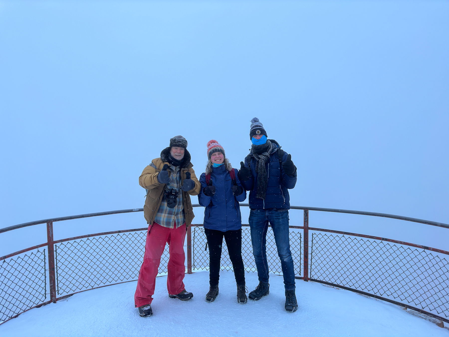 This is the white out view from Inspiration point and my French friend on the left and the couple from Switzerland on the right. It was REALLY COLD!!!