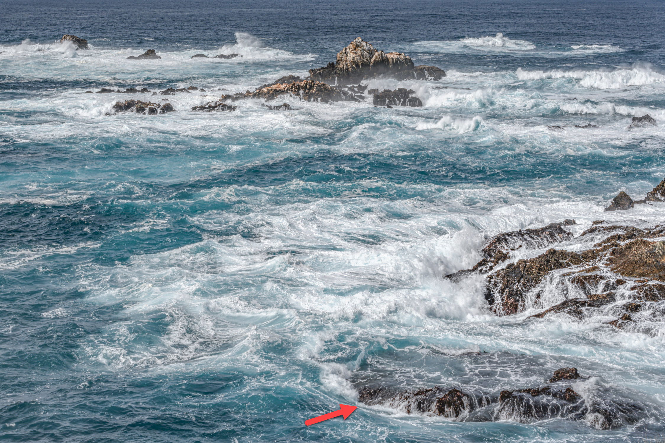For what it’s worth, the region between my sea stack (red arrow) and the sea stacks in the distance is locally referred to as the “Devil’s Cauldron”. It extends quite a bit further outside the right frame.