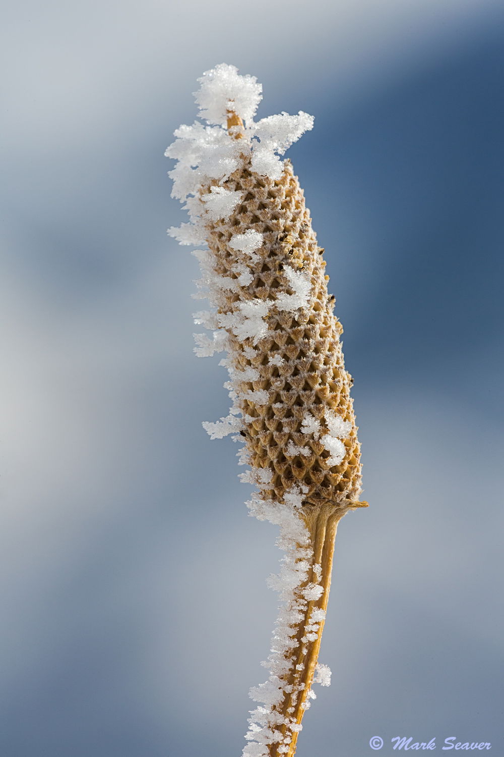 Snow!!! Yikes, I don’t even want to think of it! Great macro shot, Mark. I love the snow flakes on the seed head. Wonderful detail, especially considering a breeze.