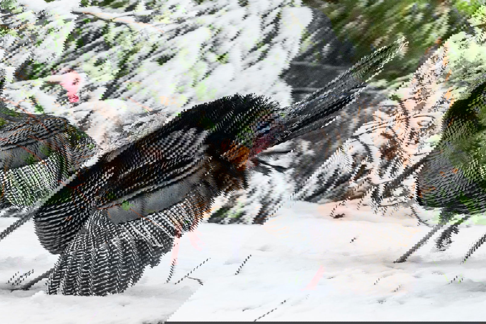 We got some snow and I enjoyed going out back and looking for some subjects. I got these two toms walking by.