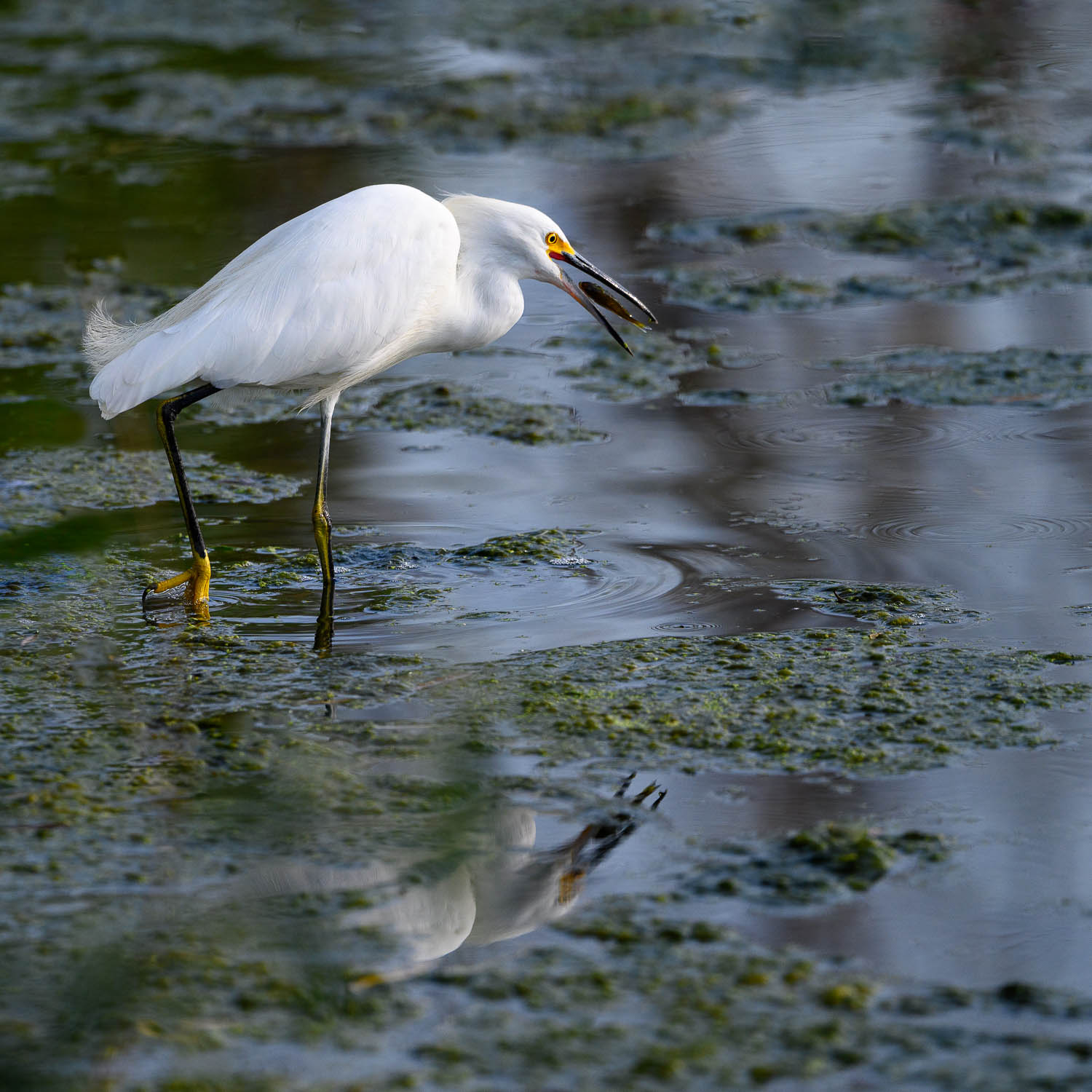 This is really sweet, Richard. Excellent detail in the egret and you also managed to get the fish in mid-air. I love the water and vegetation background.