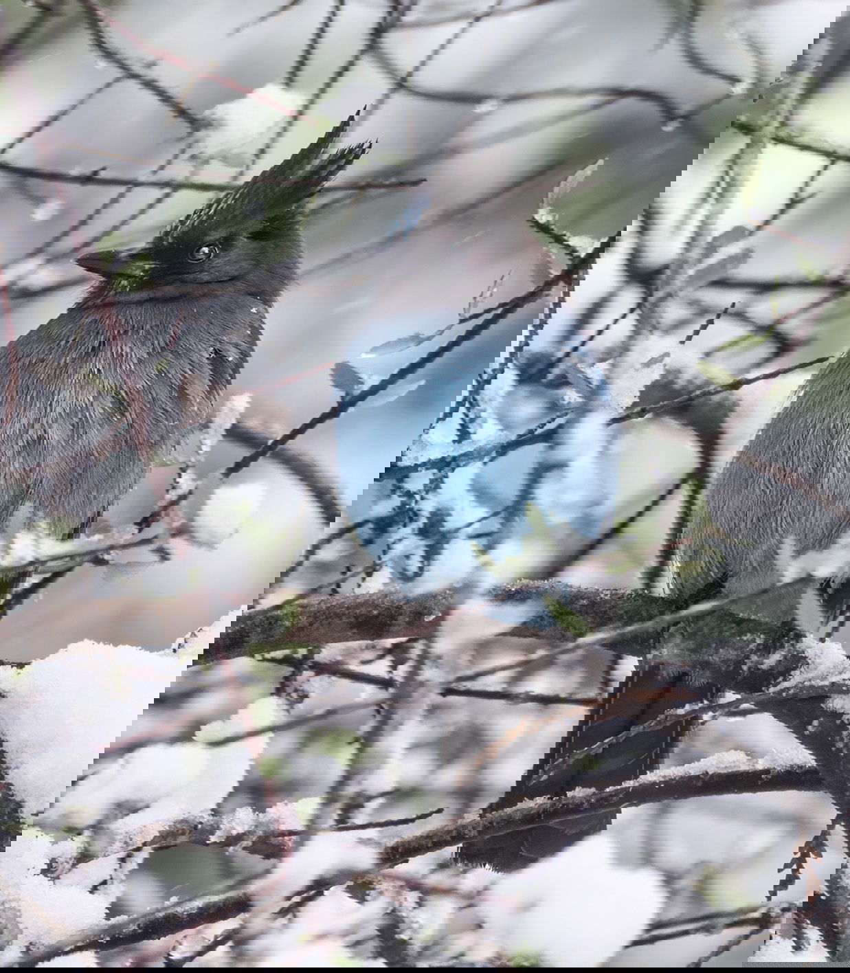 He’s blue with the cold; at least that’s the impression I get. Cropping and exposure fine. I might play with the catchlight in its eye to make it more of a pinpoint. But it’s a fine winter shot.