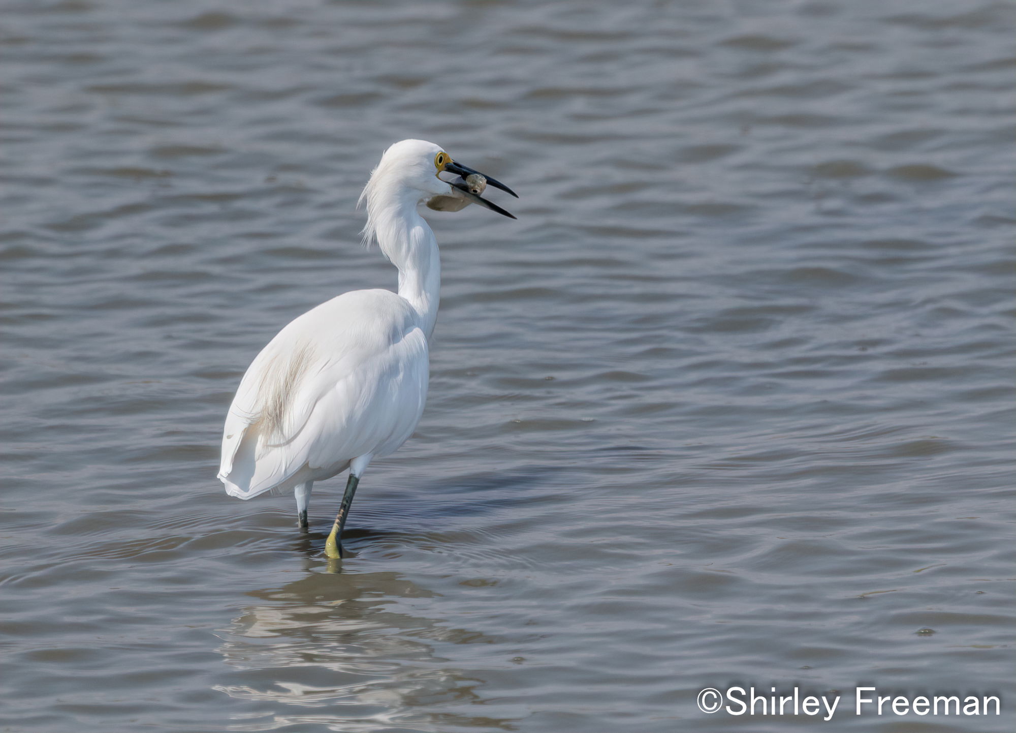 You did a really great job with the lighting, Shirley. It doesn’t look as if it were harsh light, though obviously high. The fish eye makes this image for me and it works extremely well with the pose of the Egret.