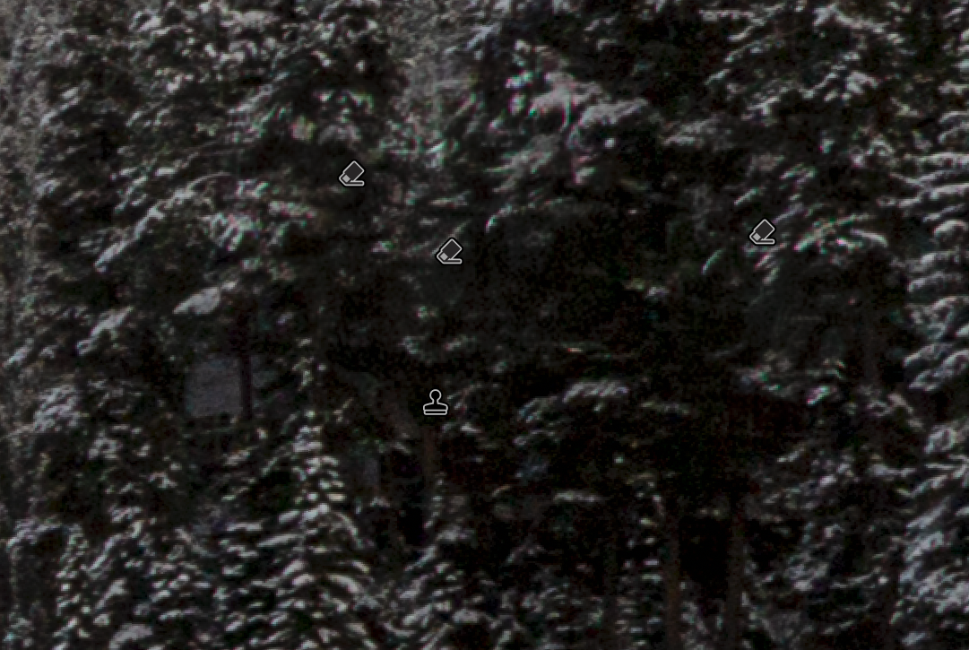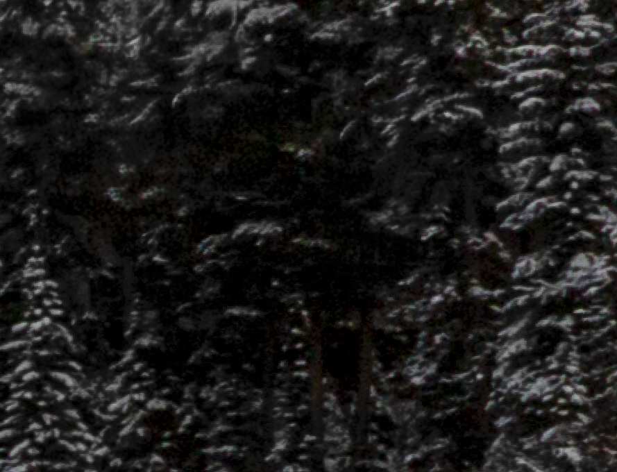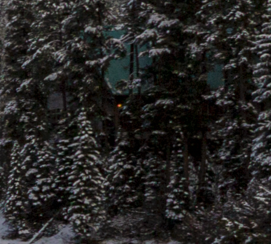 Fullest possible width, little yellow light removed, roof remains, vibrance reduced to eliminate the noisy colors in the snow on the trees (didn’t see that until really working on the roof). Screenshot for that area is posted as a reply down toward the bottom.