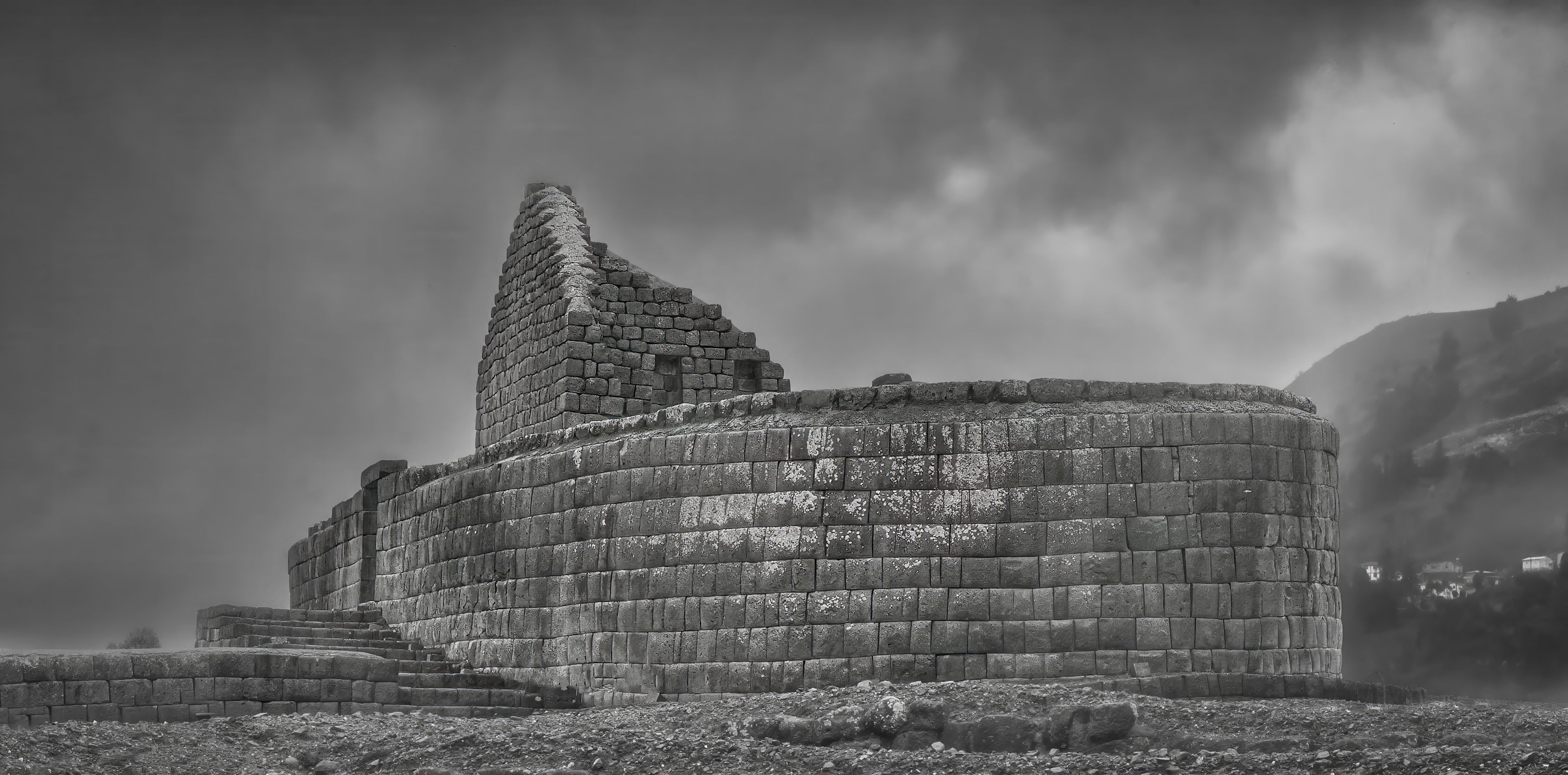 While visiting Ecuador, we visitied the Inca Ruins in Ingapirca. It was a day of rain, fog, and the occasional spot of sunshine. I marveled at the construction, constructed with no motar. This is the most complete structure on the site; most of the area was striped of it’s building materials. There was also an ancient Inca road. What engineers the Inca were!