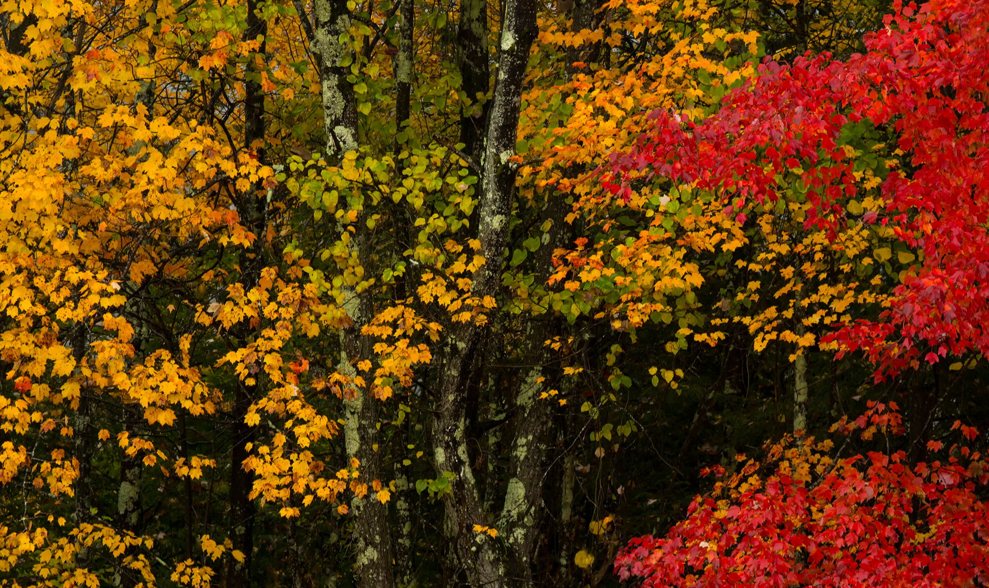 Gotta love those red maples. I’m not sure I would have seen the 3 on my own, but now I can’t un-see it. I love the green lichen on the trees, it creates some nice color contrast against the red leaves. The comp is nicely balanced in my opinion, having the tree trunks in the center makes it so neither the yellow nor red leaves dominate too much. The color is strong, but the leaves appear to be wet, so I’m good with that, it was done for creative effect. This is sort of how Velvia 50 used to look for color and contrast, and I mean that in a good way. Nice intimate scene, well done.